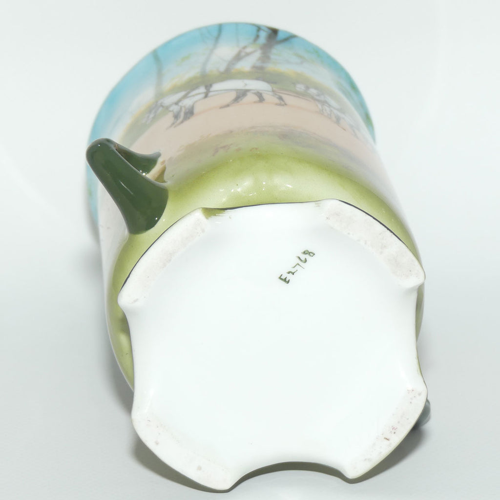 Please note: this item is not stamped with the Royal Doulton trademark to base. There is absolutely no doubt in my mind that the item is authentic Royal Doulton. The scene and quality is perfectly consistent with other Royal Doulton Coaching, it is marked with the correct E2768 pattern number [which was used on Bone china]. It is also marked with an impressed/inscribed shape number 4591 which is again perfectly consistent with a Doulton shape number. The lack of a basestamp is simply a factory "error"