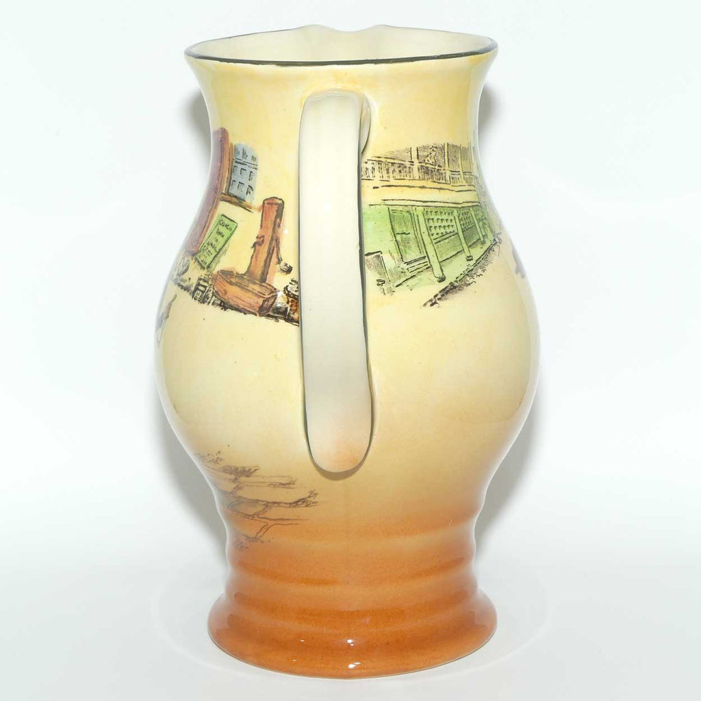 Royal Doulton Dickens series was arguably one of the most successful Seriesware designs - produced for some 50 years by Royal Doulton, with some colour and design modifications during the production period from c.1908 - 1951 . This jug by it's early D number and excellent use of colour tones, would date from the late 1930s era or thereabout
