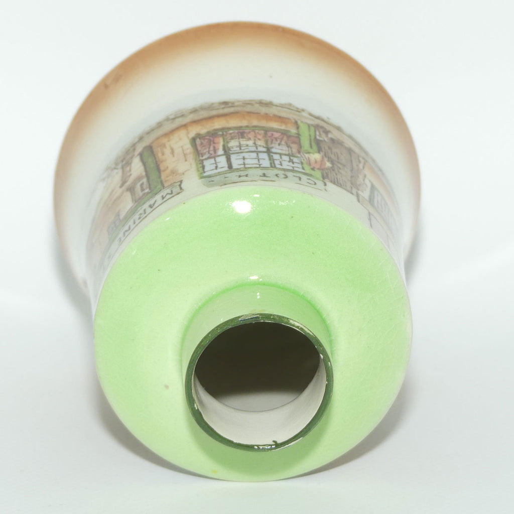 These bottle shaped vases originally came with a small lid to seal the tea caddy, however in some 30+ years dealing we have only ever seen a couple "complete" with lid - they are generally lost or broken. The shape of the item displays beautifully as a curious shape vase
