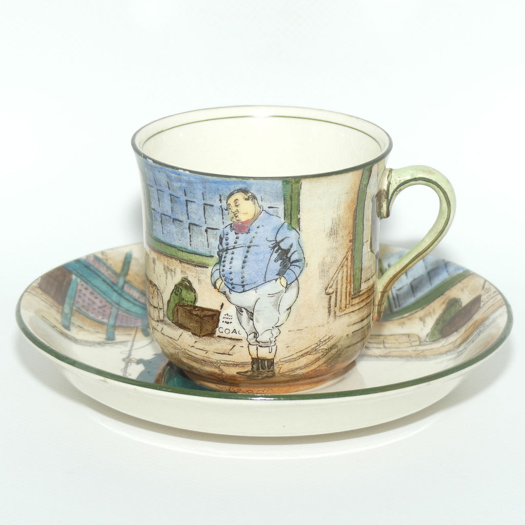 Royal Doulton Dickens series was arguably one of the most successful Seriesware designs - produced for some 50 years by Royal Doulton, with some colour and design modifications during the production period from c.1908 - 1951 . This duo by it's early D number and excellent use of colour tones, would date from the late 1910s era or thereabout
