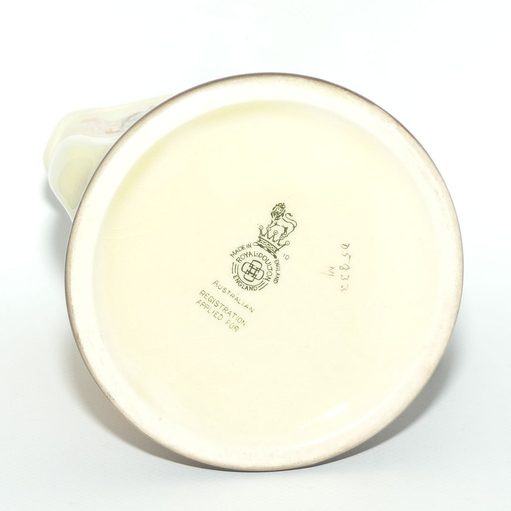 Collector Note: this jug is not recorded in Volume 1, Royal Doulton Seriesware books by Louise Irvine as part of this series. It is however depicted at page 20 Volume 5, New Discoveries by Louise Irvine - so it isn't an "abundant" example
