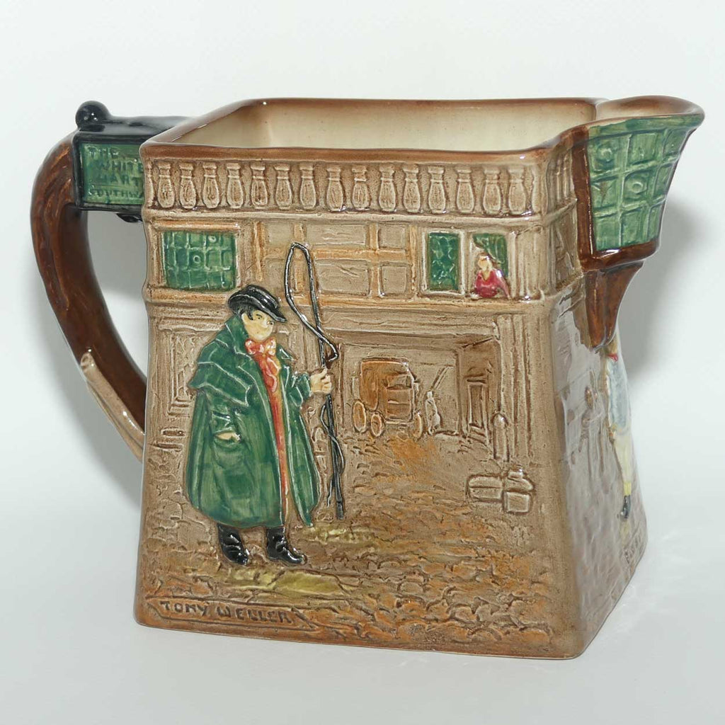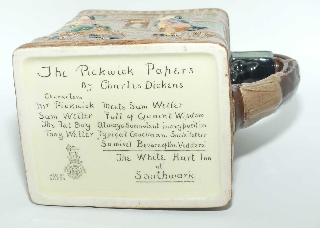 Royal Doulton Dickens G Low Relief Pickwick Papers jug | Depicts Mr Pickwick, Sam Weller, Fat boy and Tony Weller outside the White Hart Inn D5756
