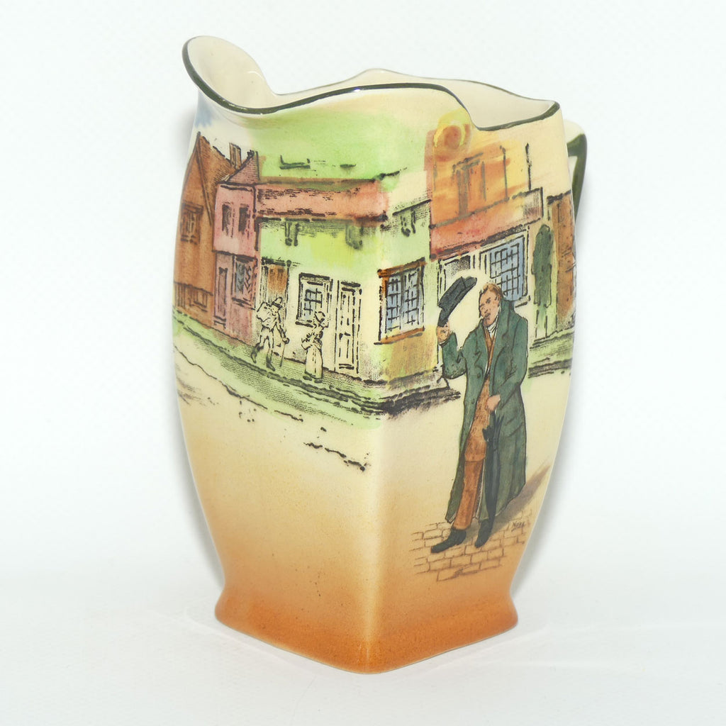 Royal Doulton Dickens series was arguably one of the most successful Seriesware designs - produced for some 50 years by Royal Doulton, with some colour and design modifications during the production period from c.1908 - 1951 . This jug by it's D pattern number and excellent use of colour tones, would date from the late 1930s to 1940s era or thereabout