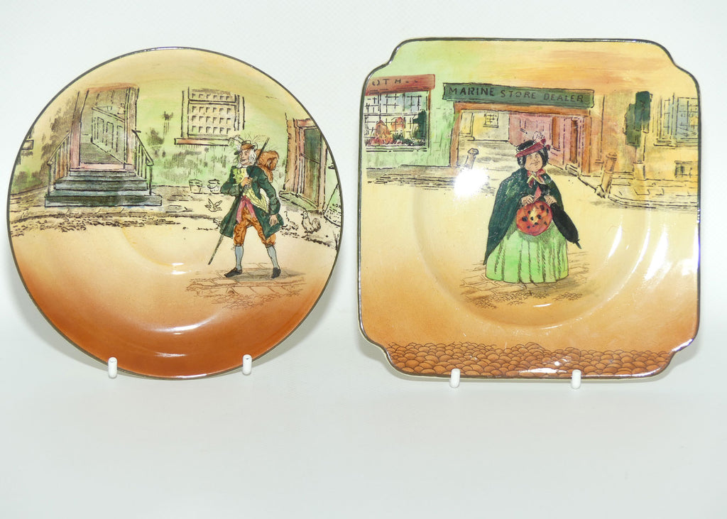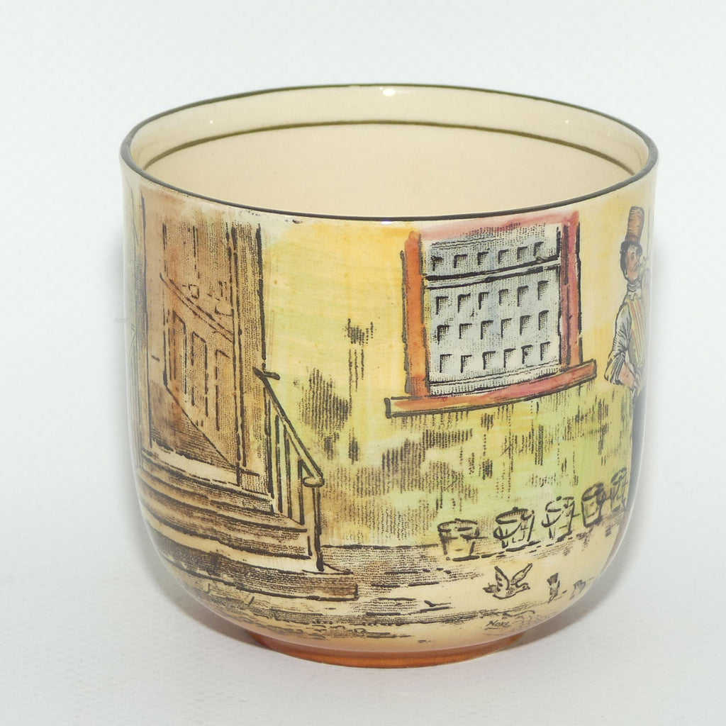 Royal Doulton Dickens series was arguably one of the most successful Seriesware designs - produced for some 50 years by Royal Doulton, with some colour and design modifications during the production period from c.1908 - 1951 . This trio by it's early D number and excellent use of colour tones, would date from the late 1930s era or thereabout