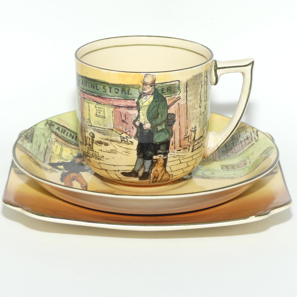 Royal Doulton Dickens series was arguably one of the most successful Seriesware designs - produced for some 50 years by Royal Doulton, with some colour and design modifications during the production period from c.1908 - 1951 . This trio by it's early D number and excellent use of colour tones, would date from the late 1930s era or thereabout