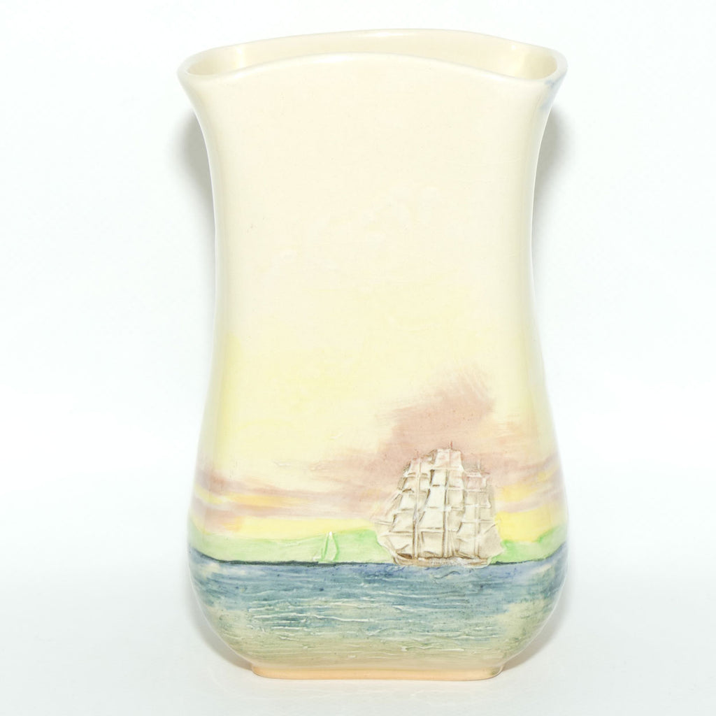 Many famous sailing ships are represented in this embossed, low relief series - which reflects the British fascination with the sea - and bears a special backstamp. In total 17 ships are depicted on various shapes. The East Indiaman depicted here, is typical of the ships of the East India Company which monopolised trade to the East in the late 18th Century.