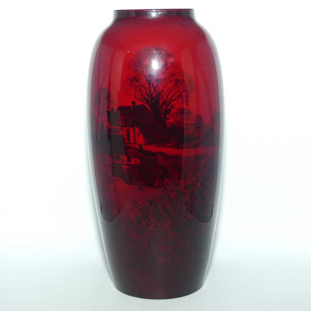 Royal Doulton Flambe Farmhouse with flowers in foreground vase