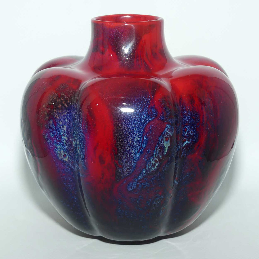 A magnificent example of the depth and variation of the highly collectable Sung glaze, the peacock feather colours really shine through! Signed to base Sung, Noke and FM (Fred Moore)