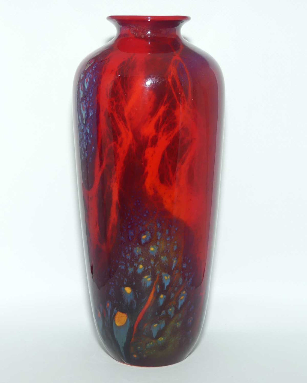 A truly magnificent example of Art Pottery and exotic glazes - the depth and variation of the highly collectable Sung glaze seen here encompasses rich reds and stunning Peacock Feather blues