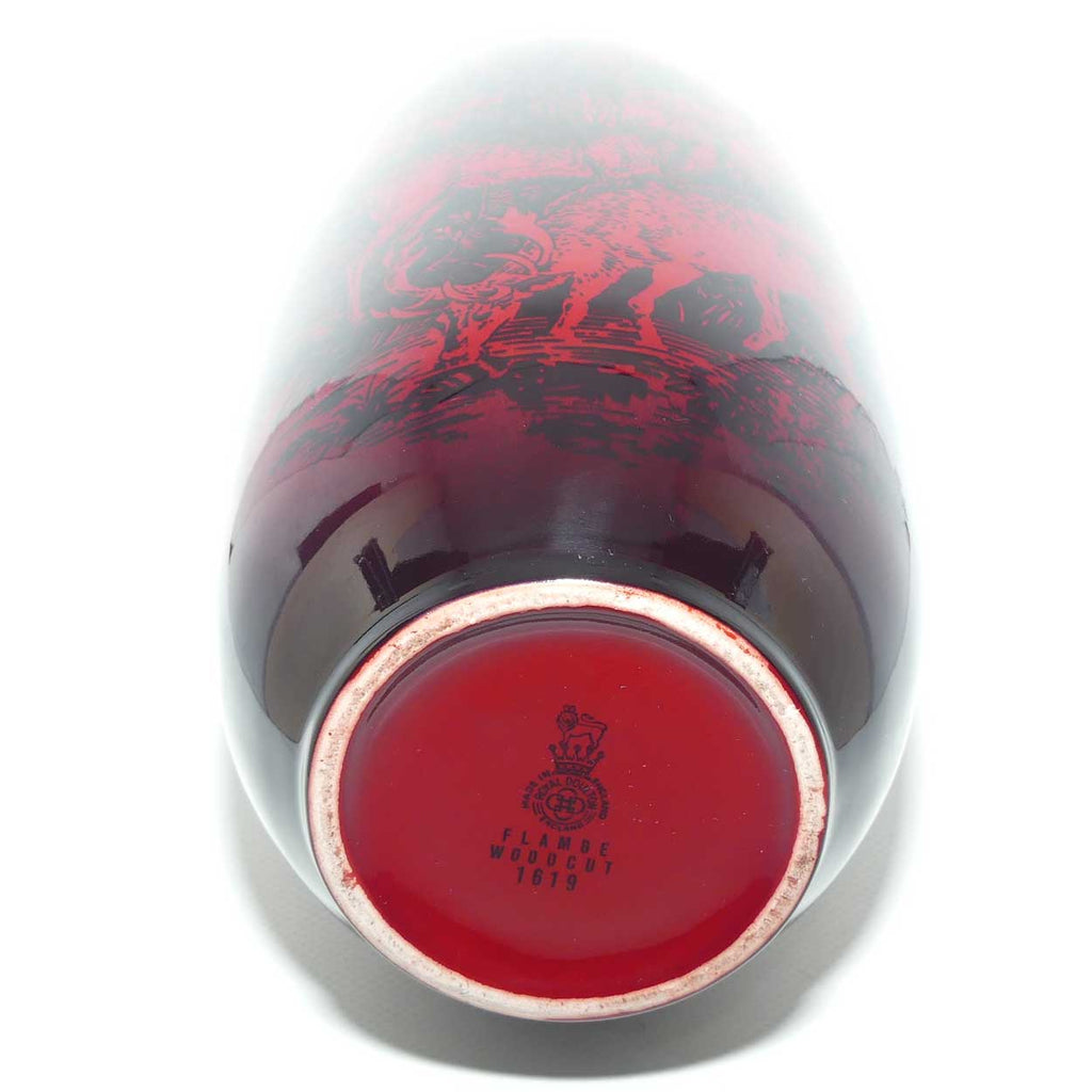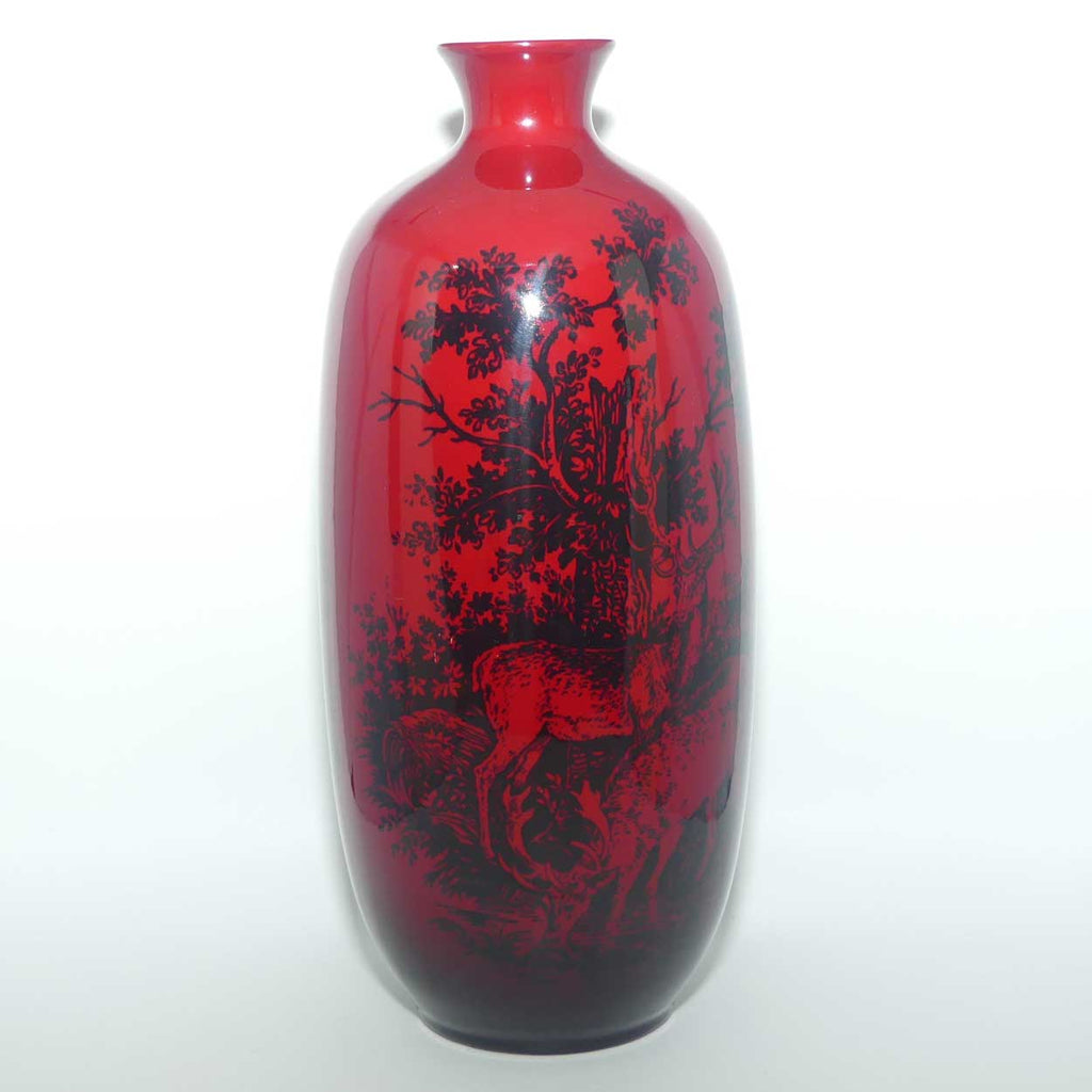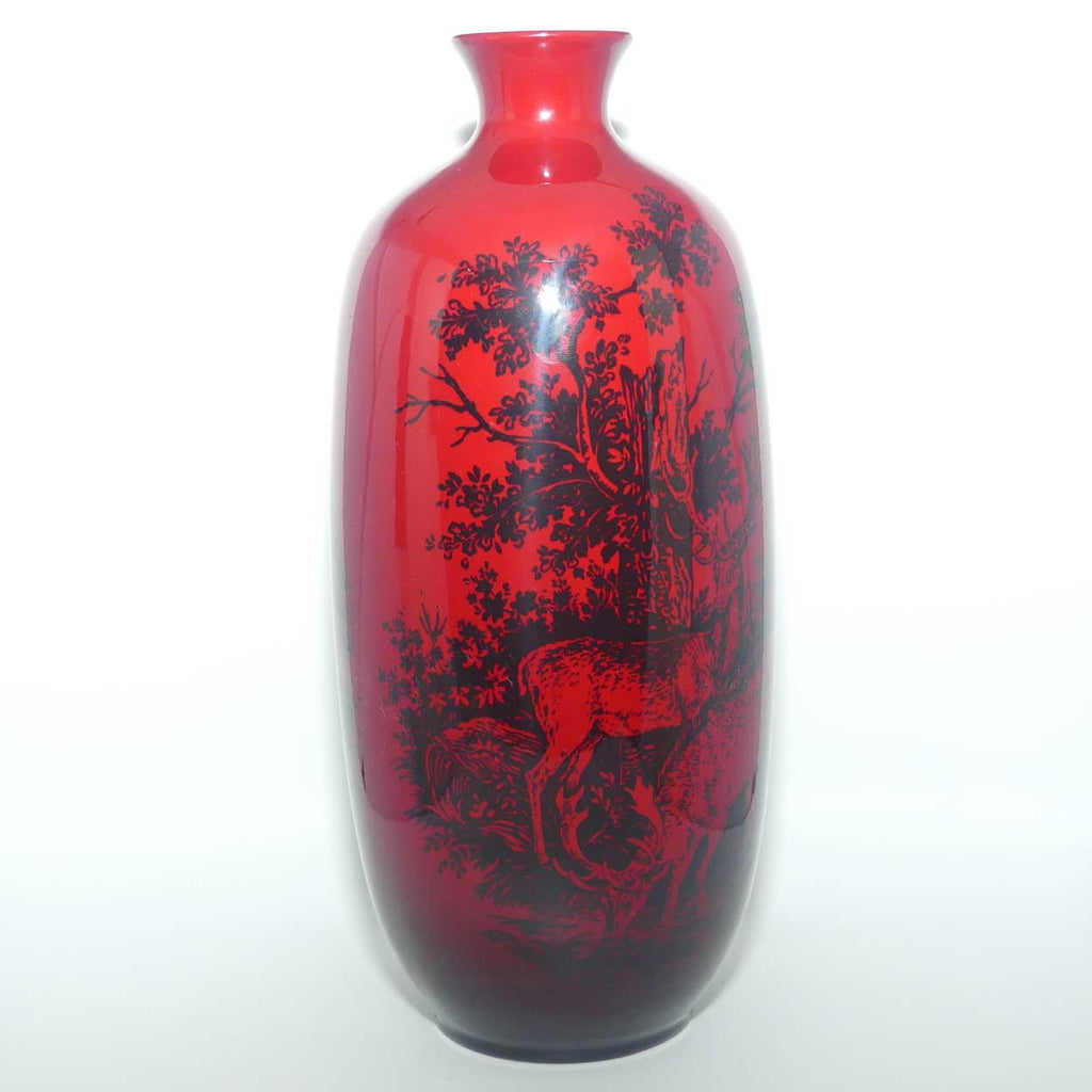 Royal Doulton Flambe Woodcut Highland Deer tall vase