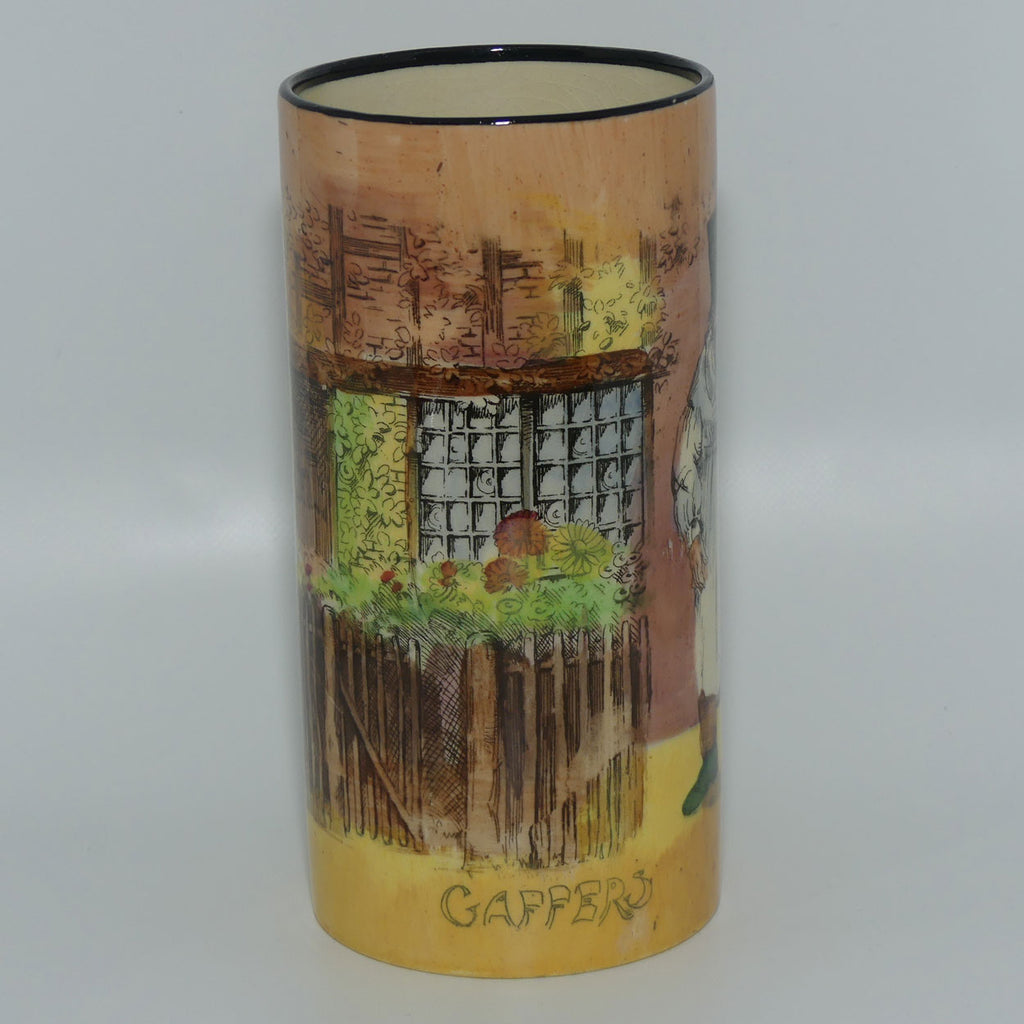 Scene 6: Front view of gaffer in buttoned smock with left hand holding angled stick