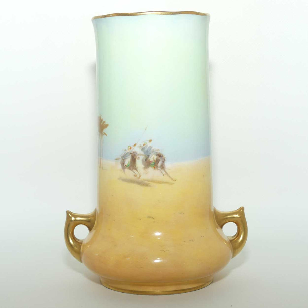 Royal Doulton hand painted and gilt Middle East Desert Scenes handled vase