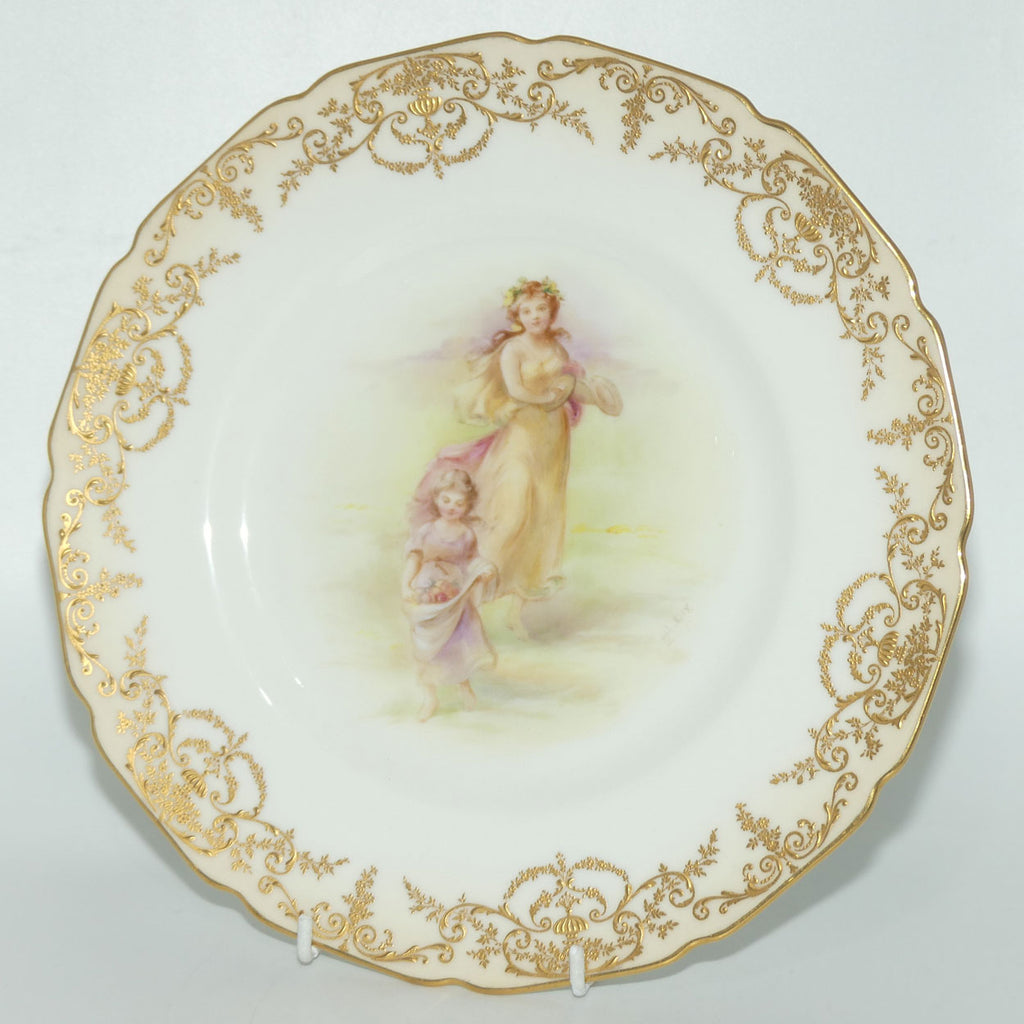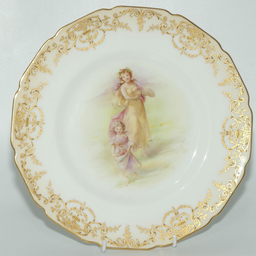 Royal Doulton hand painted and gilt Young Maiden and Child with fruit plate