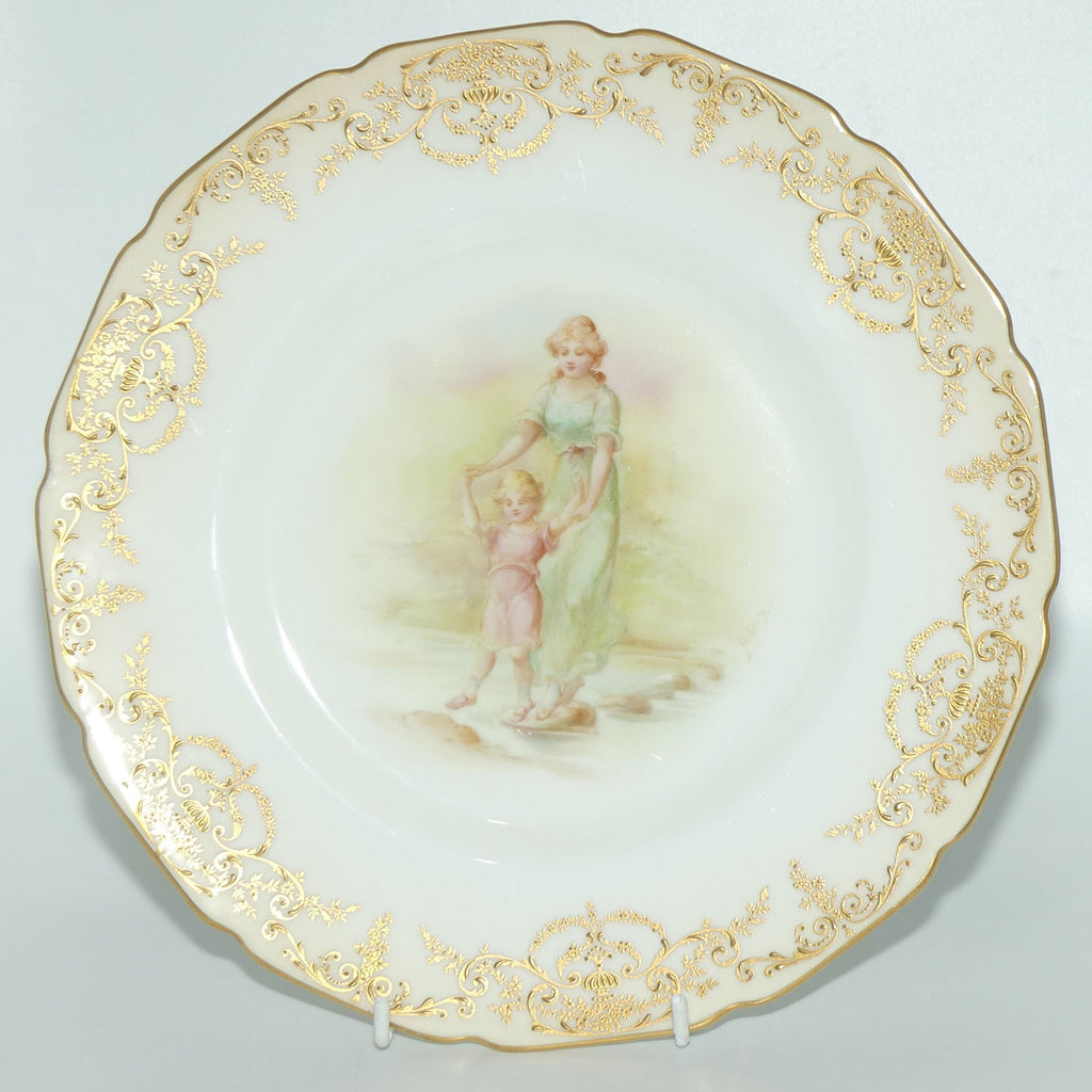 Royal Doulton hand painted and coloured Young woman and Child walking over stepping stones plate