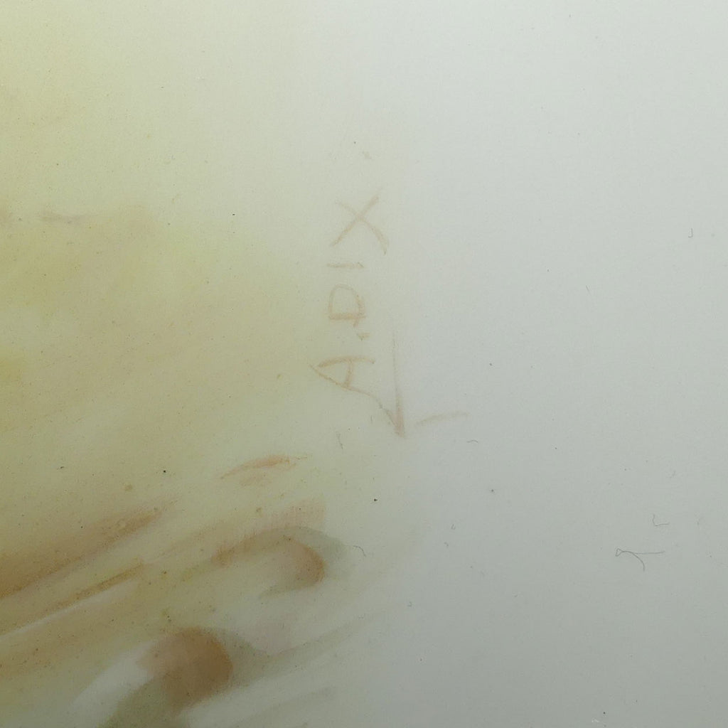 Little is written about Arthur Dix as an artist at Royal Doulton - however his work is highly regarded and examples have been seen sold in superior auction rooms like Bonhams - so the work is not without high regard. Examples of this artists work were specifically branded for exclusive stores in the US like Gilman Collamore & Co 5th Ave & 30th Street New York. Under extremely close scrutiny the style is not unlike the work of George White - who is one of the best Doulton artists in this era. It is known that many artists at Royal Doulton painted under pseudonyms when their style was not their own work - but after the style of another artist. My personal belief is that A Dix was the nom de plume of the widely acclaimed George White as the work is unerringly similar - perhaps George White did not want to lower his colours to be known for painting lesser more commercial pieces than the masterpieces he was known for.