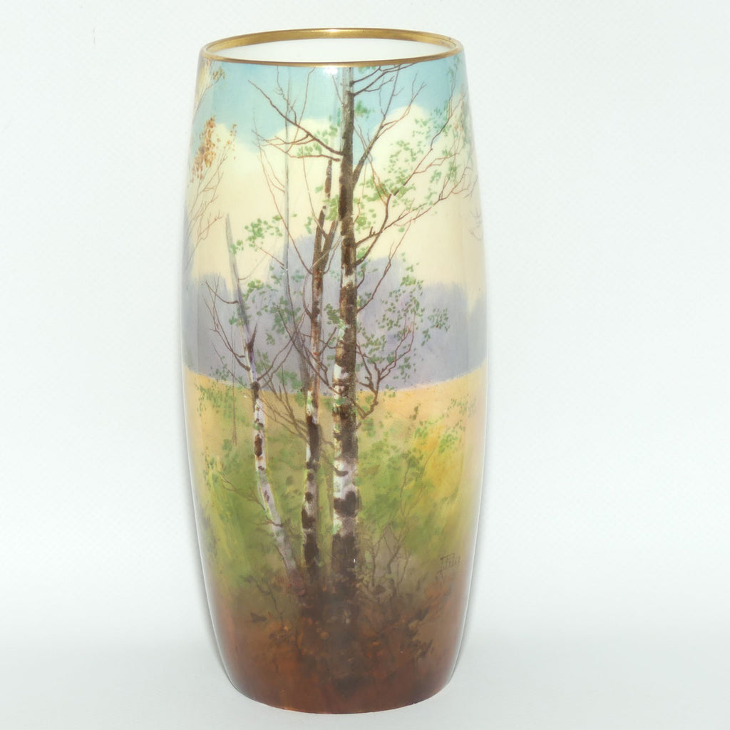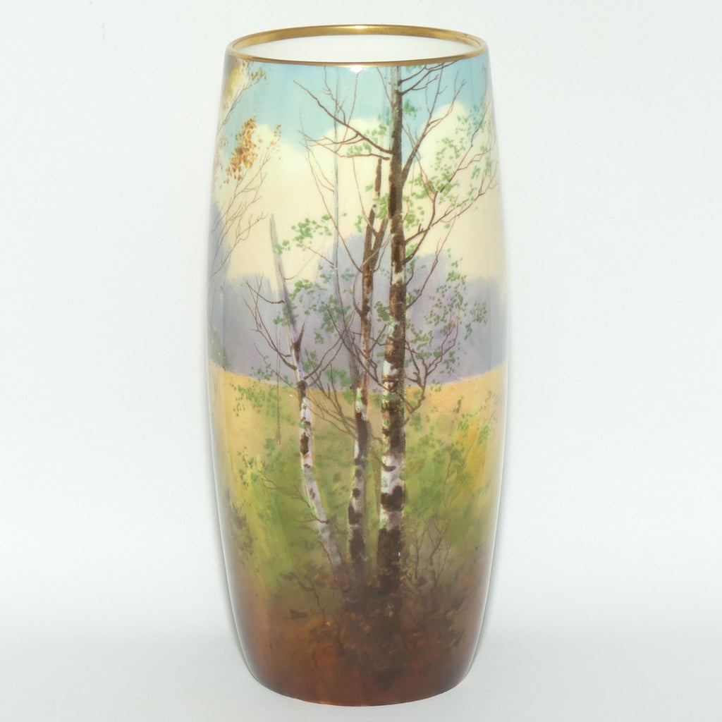 Royal Doulton hand painted & gilt Trees cylindrical vase