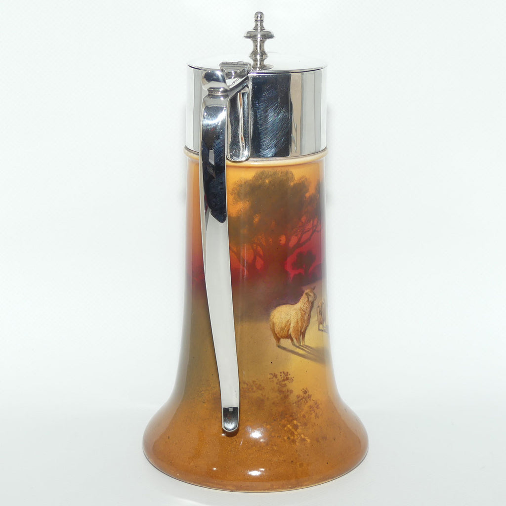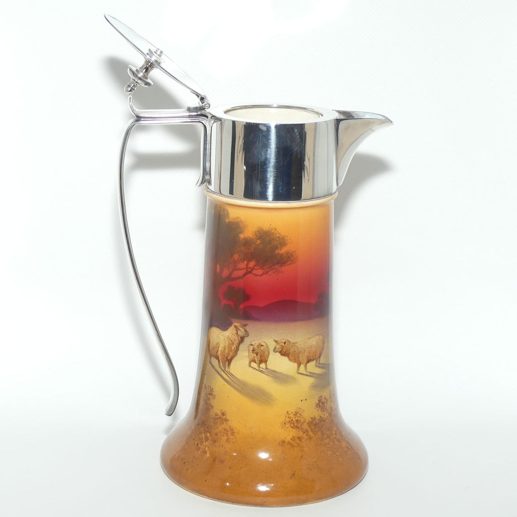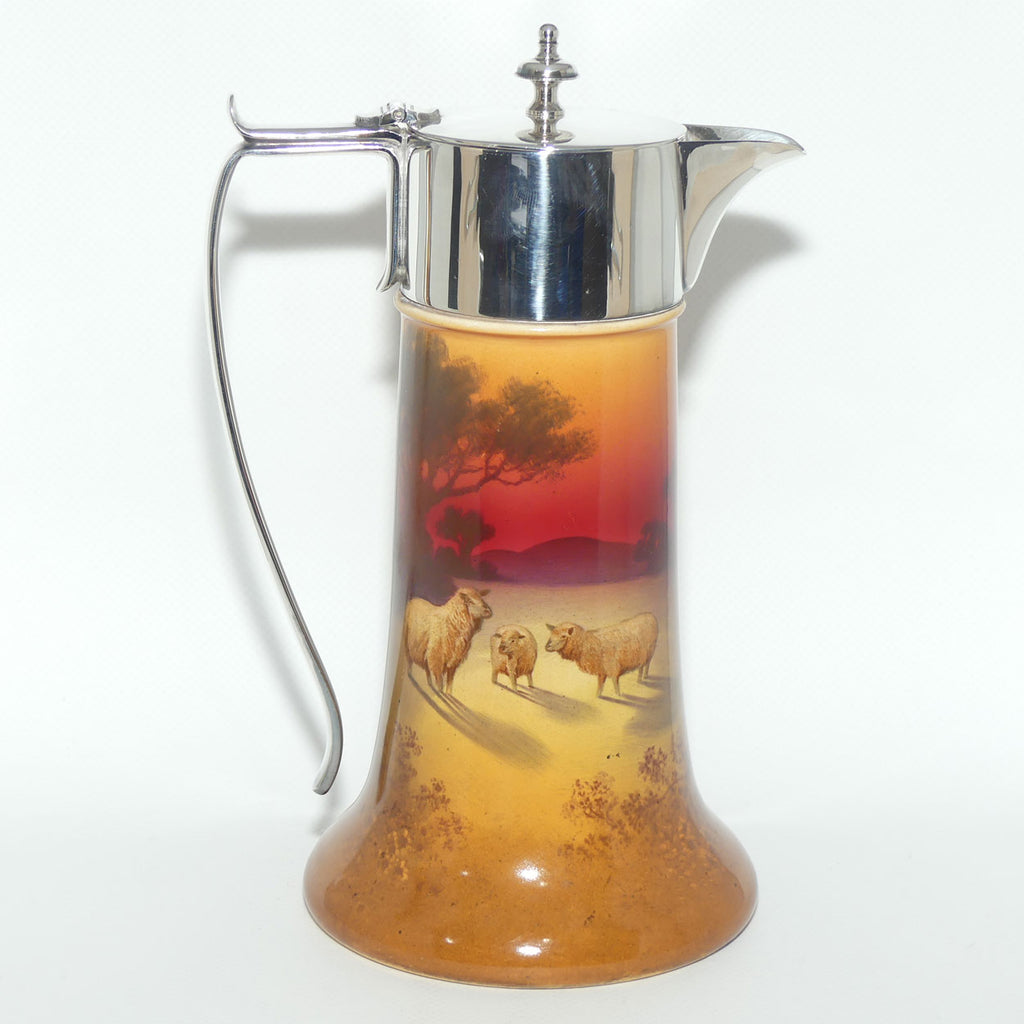 Royal Doulton hand painted Sheep claret jug with EPNS mounts