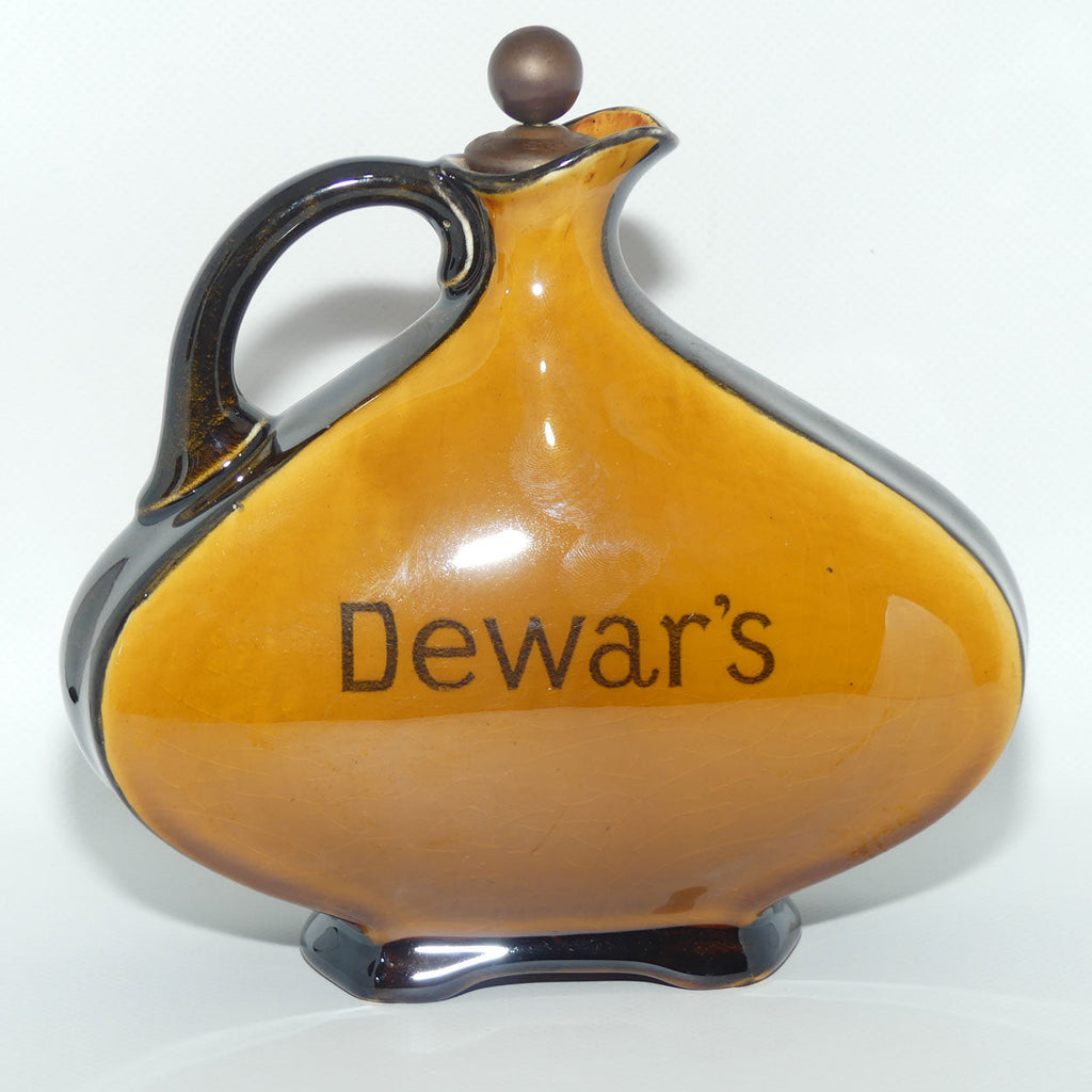 This Triangular flask displays an Australian Interest scene commemorating a flight over Sydney Harbour by Maurice Guillaux in 1914. Dewar's inscribed on the reverse. Stopper Included