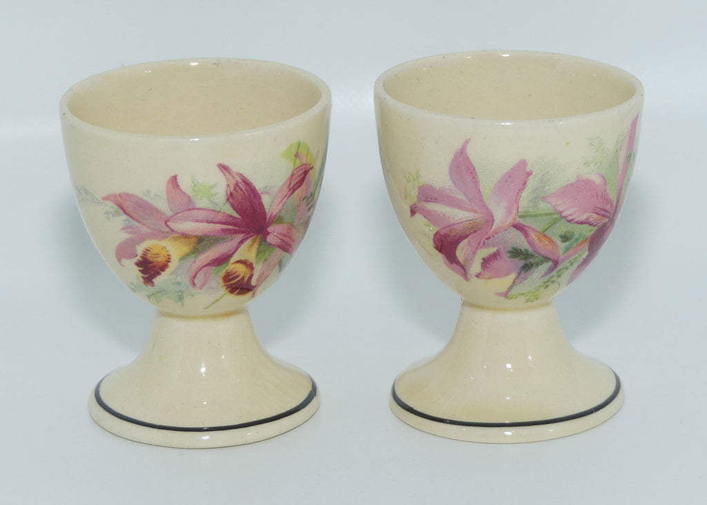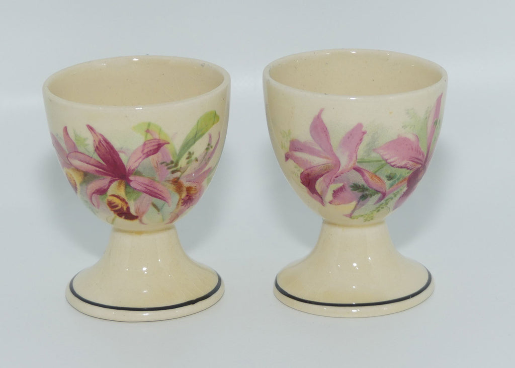 There is slight difference as between the actual transfer on this pair, but that is just a vagary of Royal Doulton seriesware patterns where many variations of the flowers were on a transfer sheet and "cut up" and randomly applied to pieces. This is one of the scarcest shapes in any seriesware pattern - and rarely seen in Royal Doulton Orchids - add to, or complete your set today!