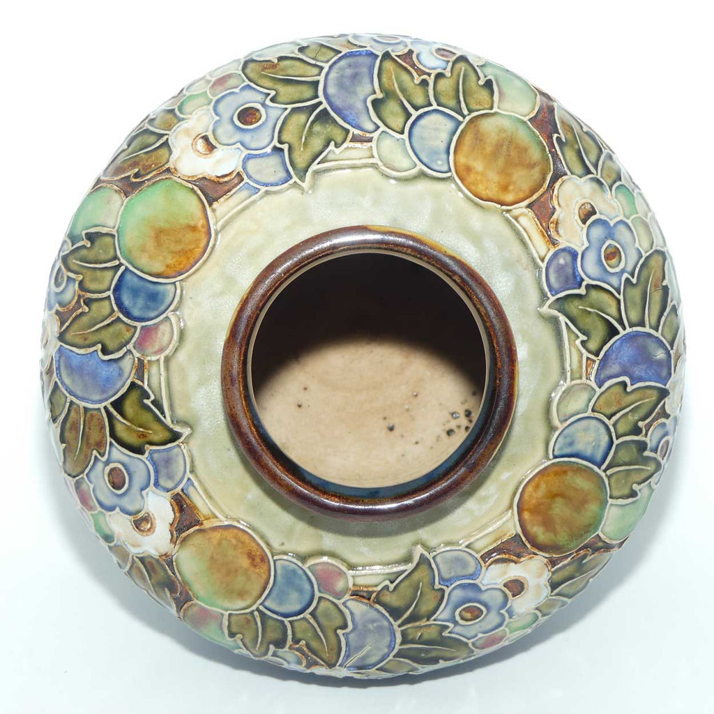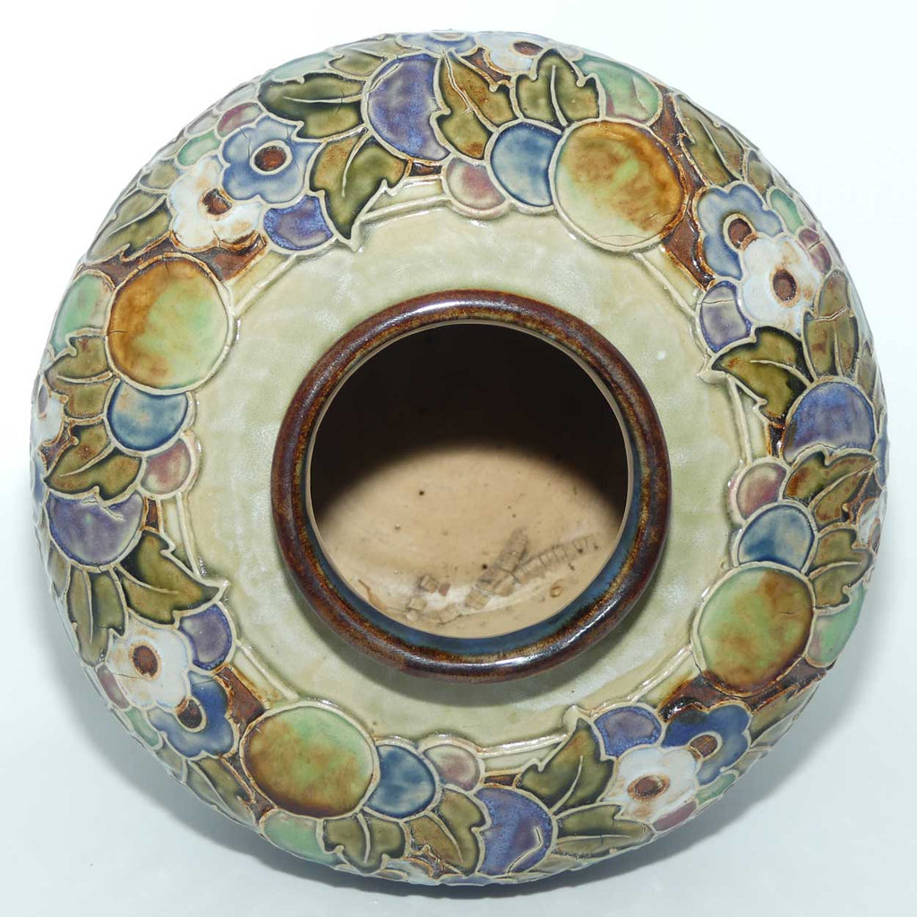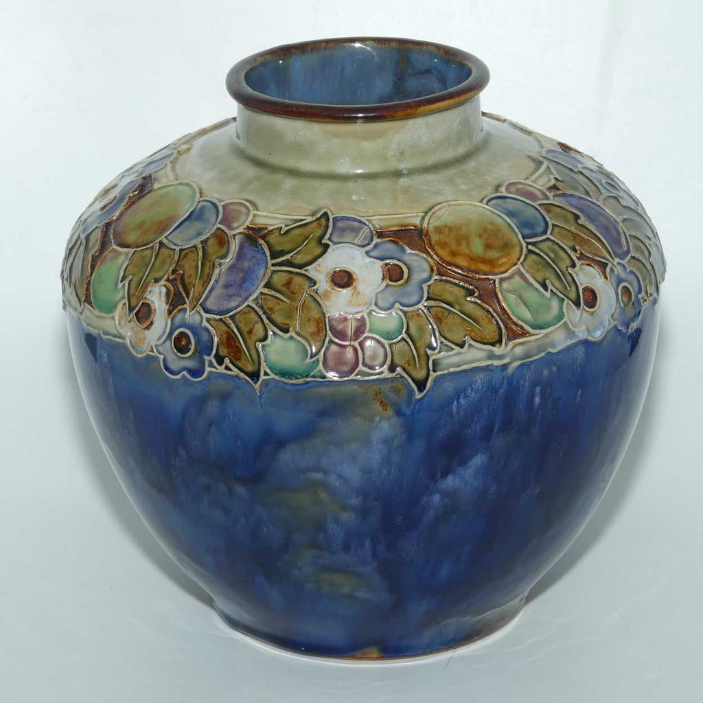 Royal Doulton pair of stoneware Floral border large ball vases by Lily Partington