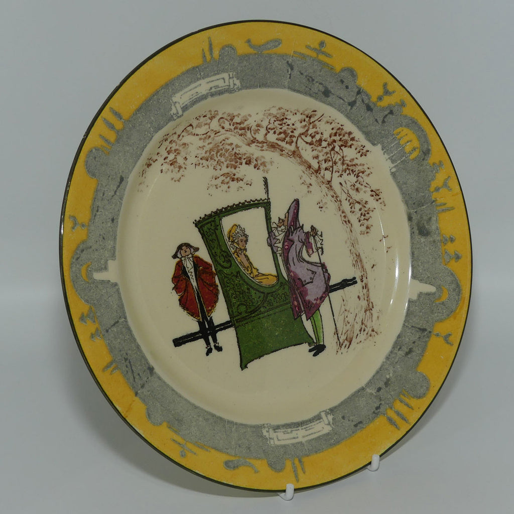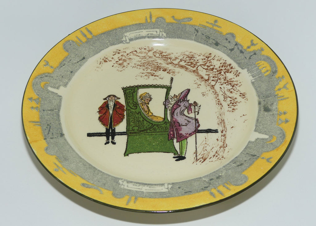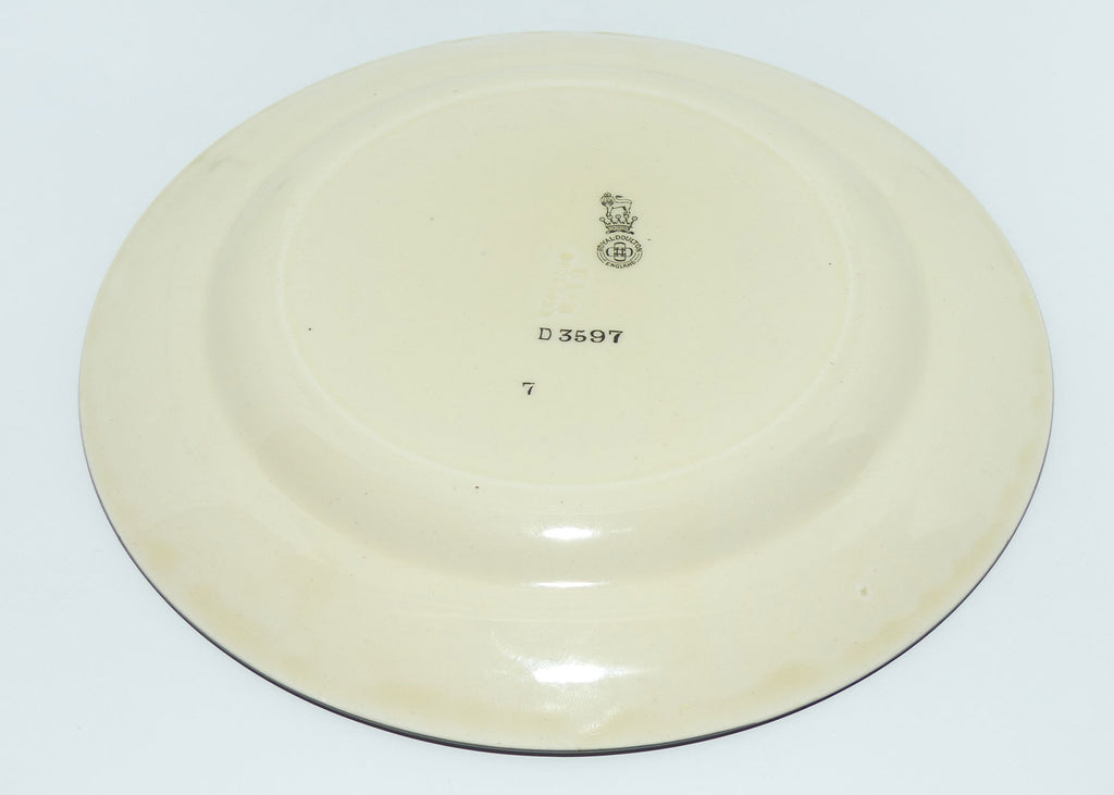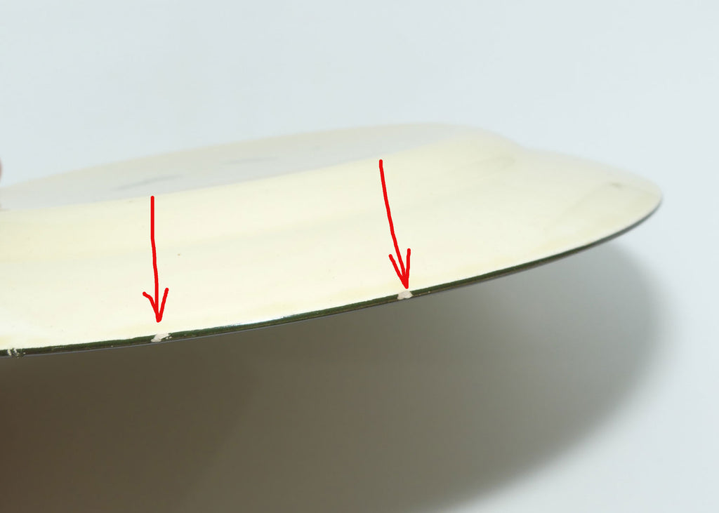 - two little dents on rim noted, either from stilting or being displayed an a wire rack - indicated by arrows in last picture. Does not detract from display.