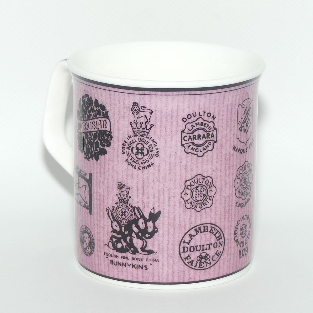 A feature of this mug is the Archival nature of it - it shows many different early Royal Doulton backstamps as the decoration