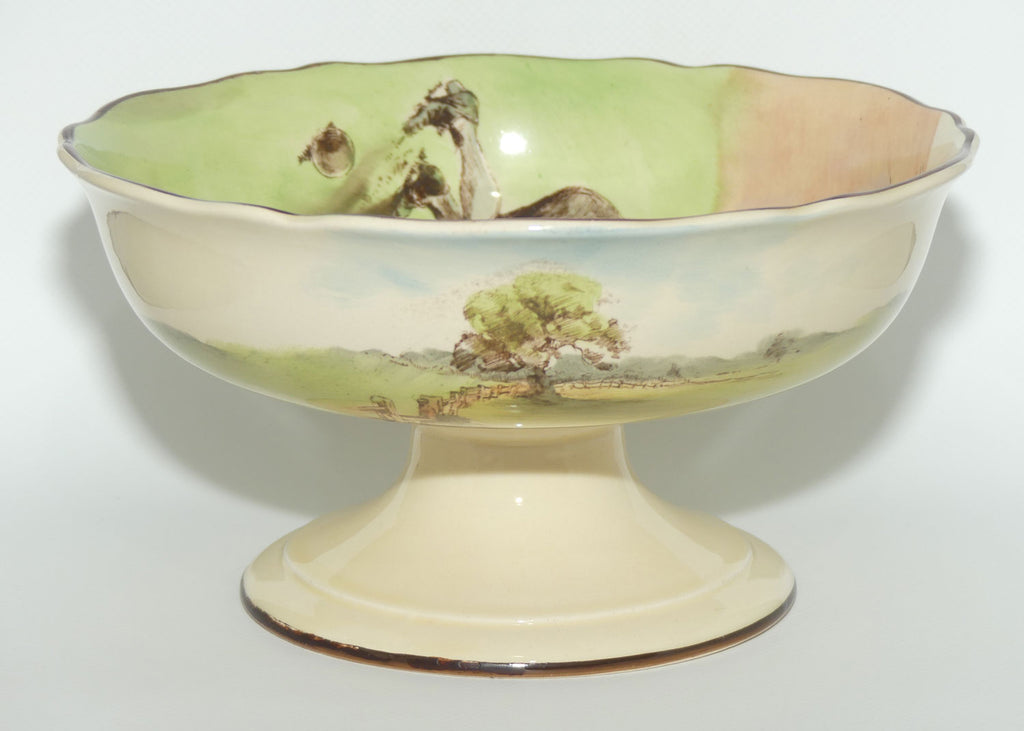 By the early pattern number on this piece, we can assume that it dates from the early 1930's or thereabout. Larger examples of Royal Doulton seriesware like this are generally hard to find - while plates are commonplace - teapots, coffee pots, comports and vases are generally statistical anomalies to survive some 100 years on!