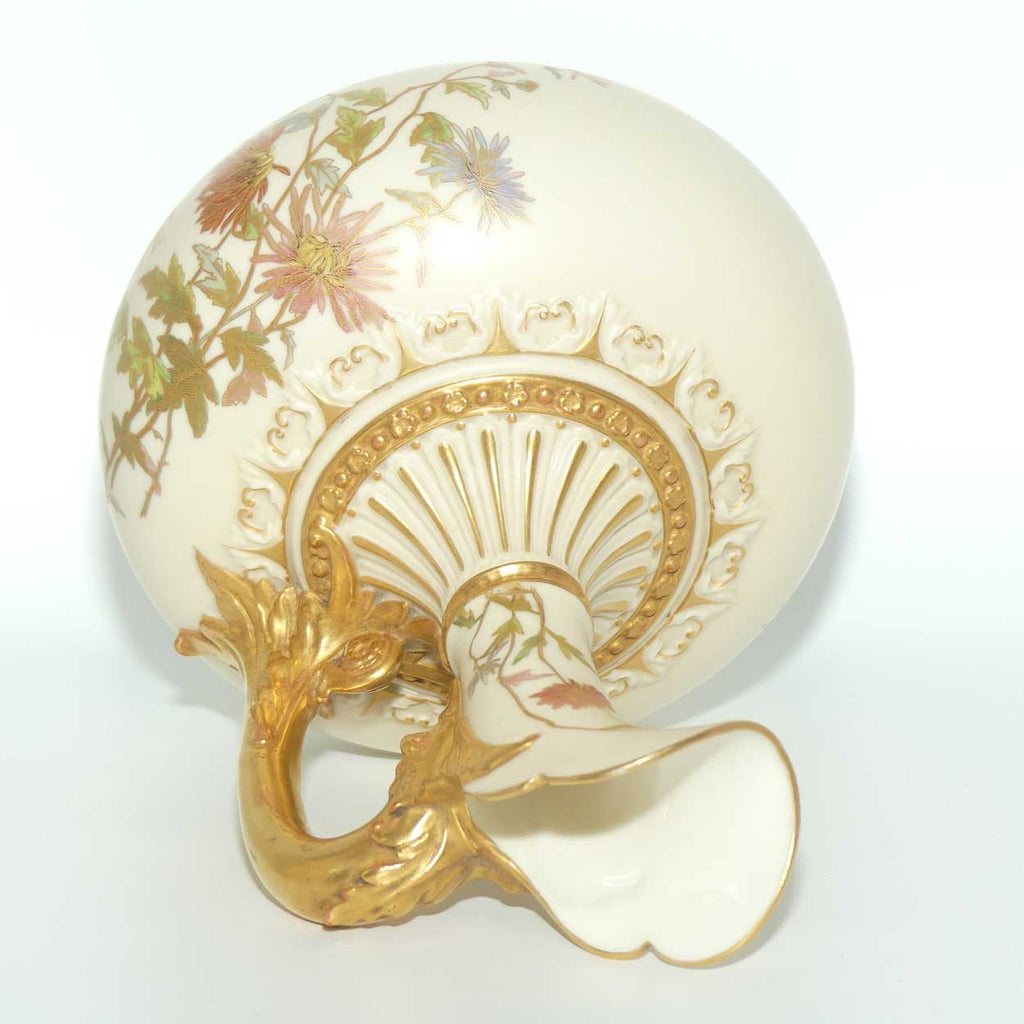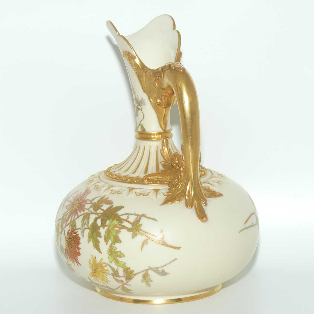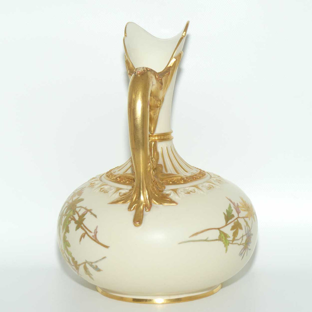 Royal Worcester Blush Ivory hand painted bulbous jug with dolphin handle (Larger size)