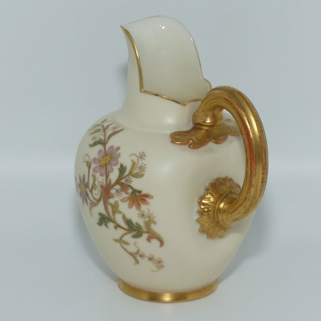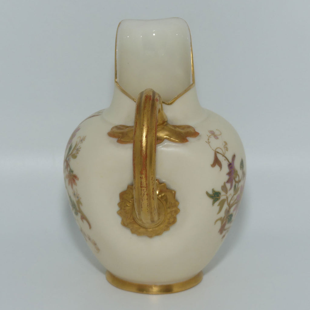 Royal Worcester Blush Ivory hand painted floral small flatback jug