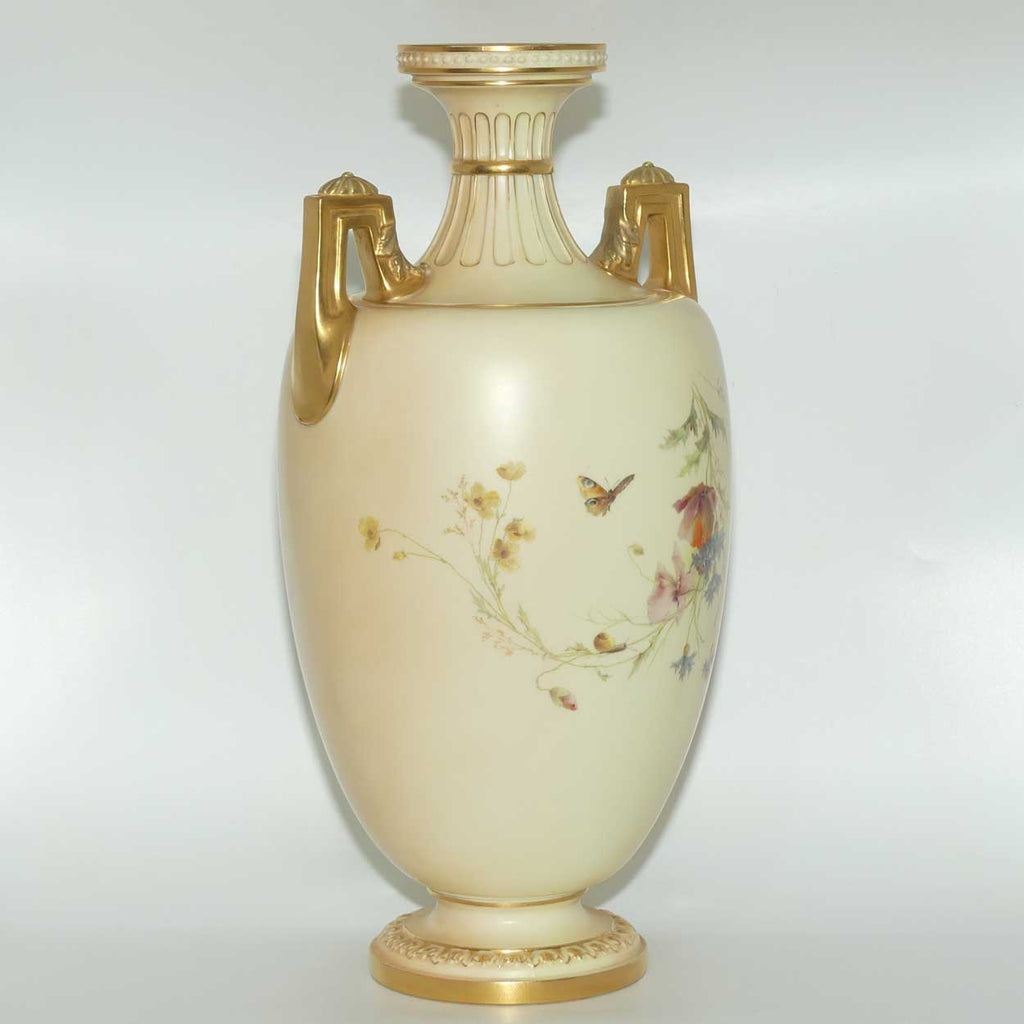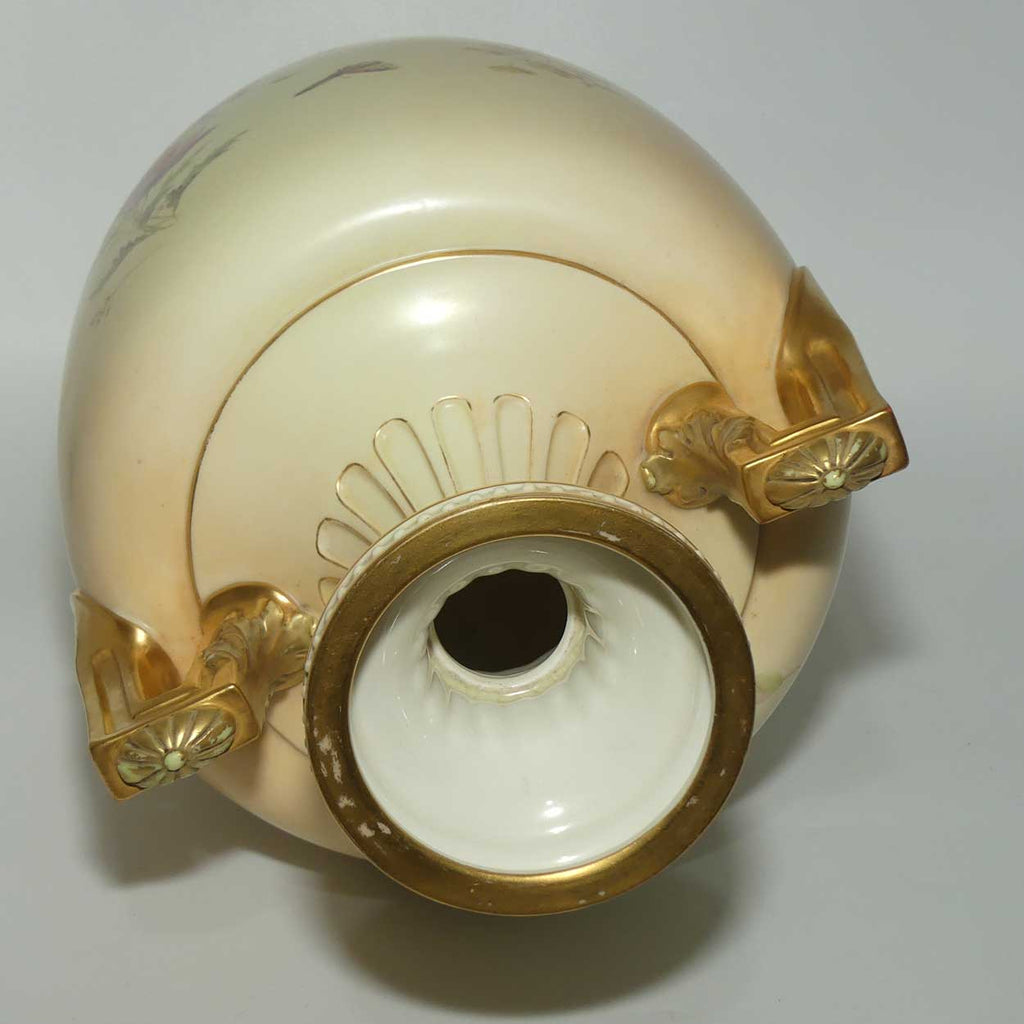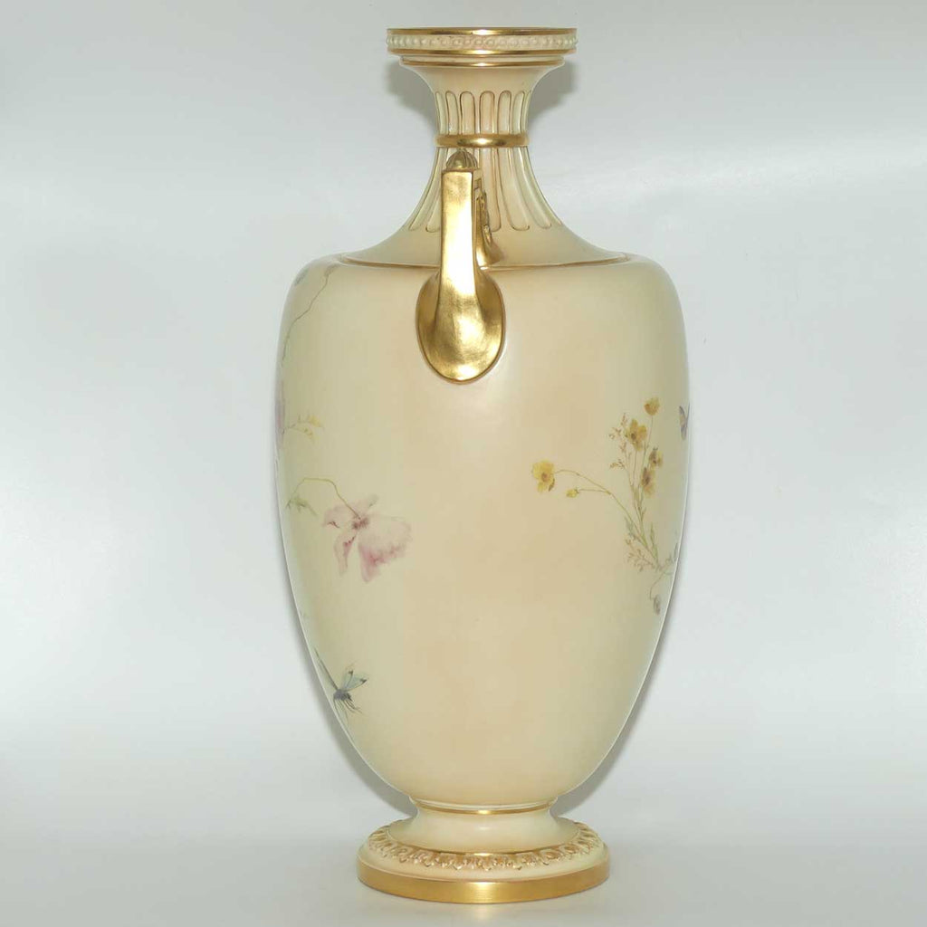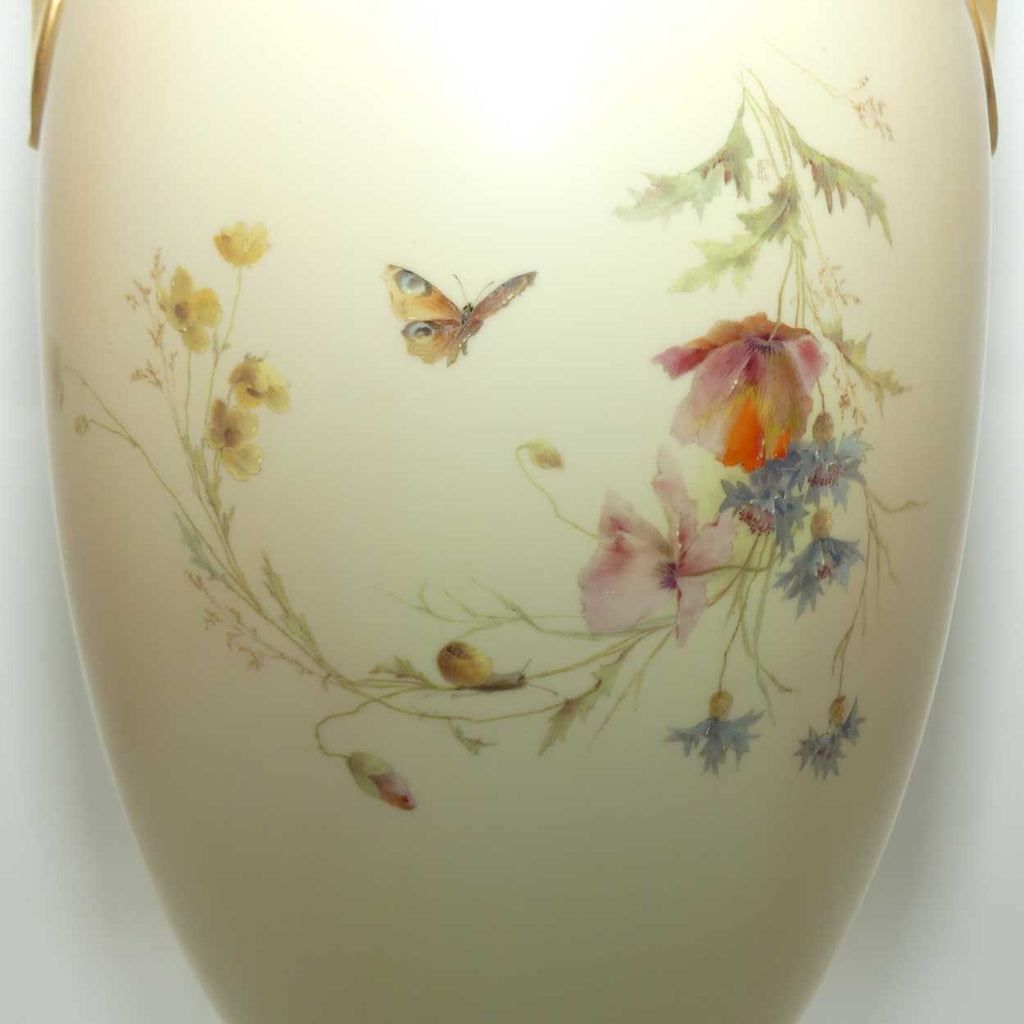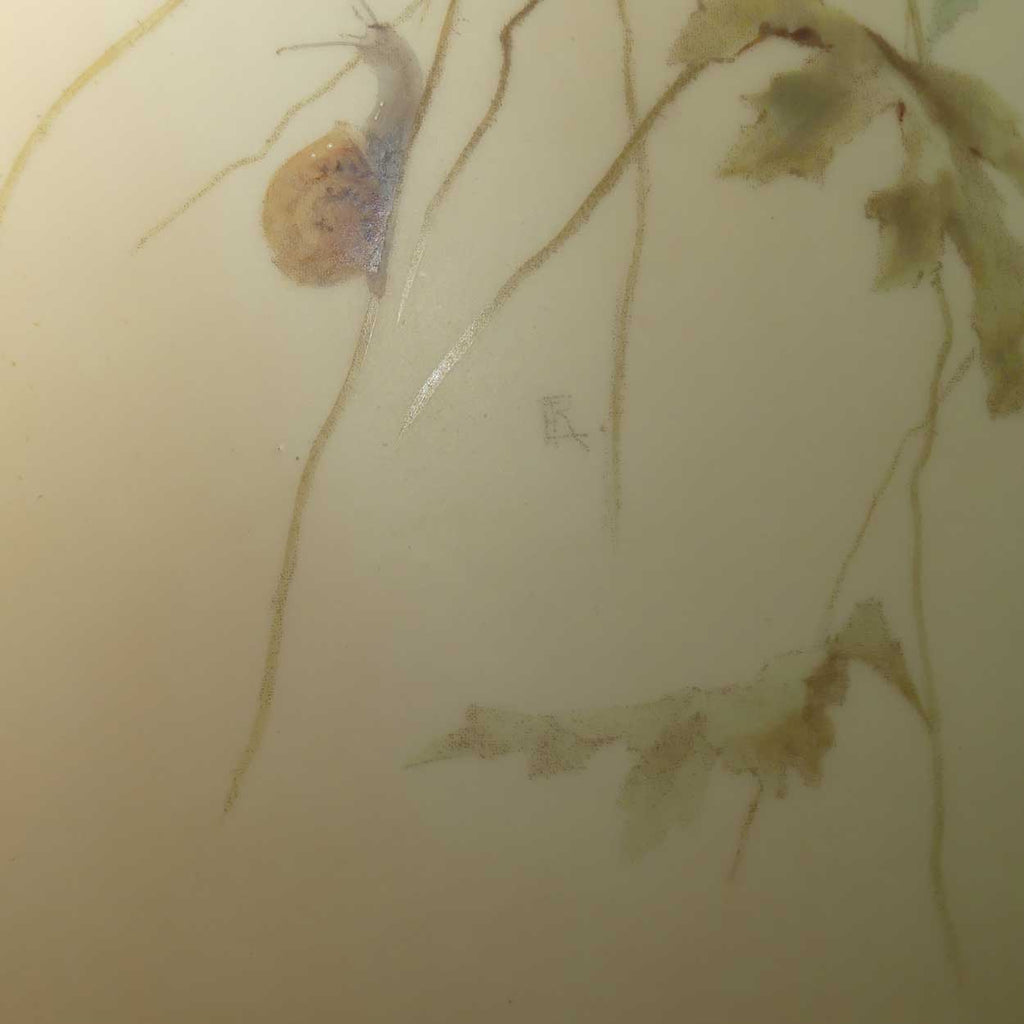 Royal Worcester Blush Ivory hand painted huge table centrepiece depicting flowers, butterflies, snails and a dragonfly signed Edward Raby