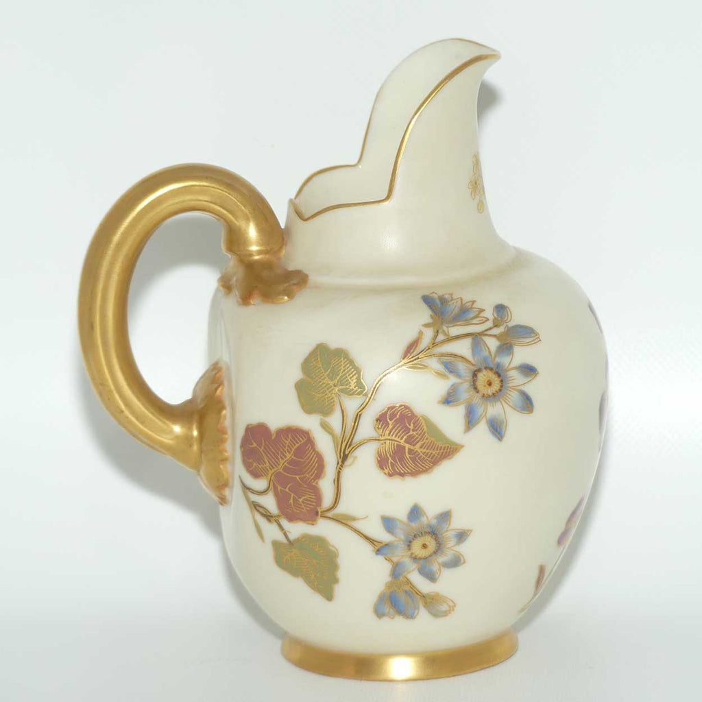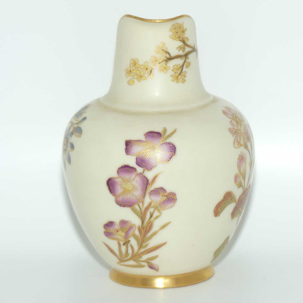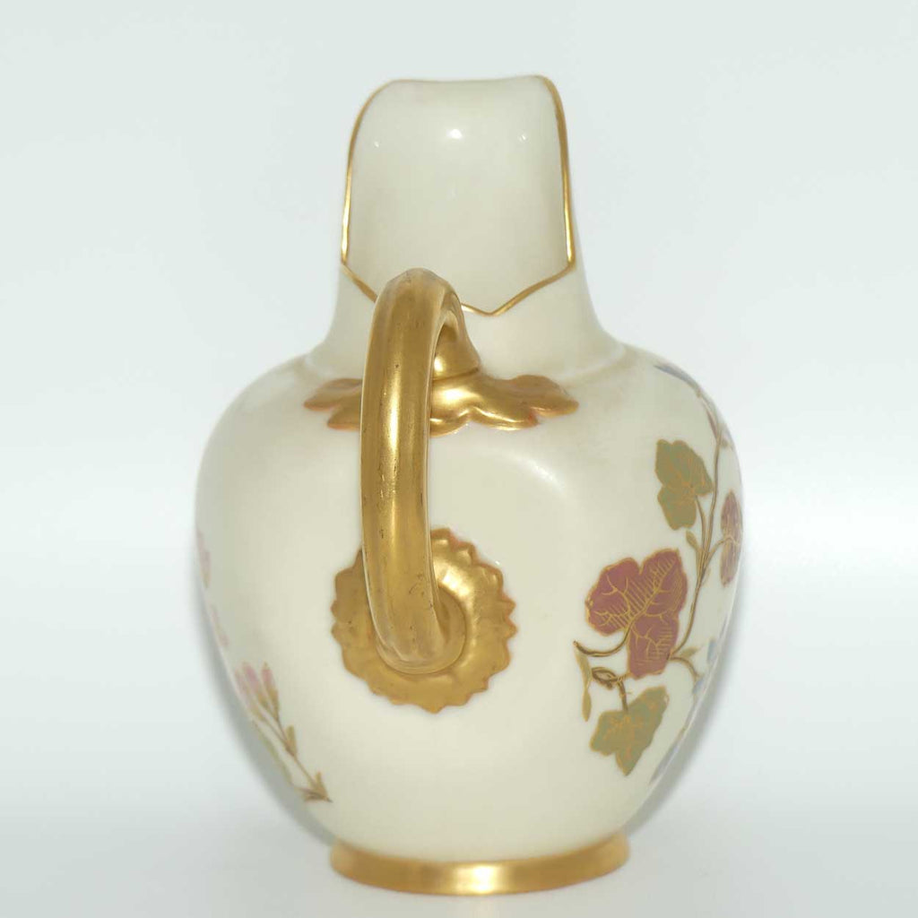 Royal Worcester Blush Ivory hand painted pink floral and foliage very small flatback jug
