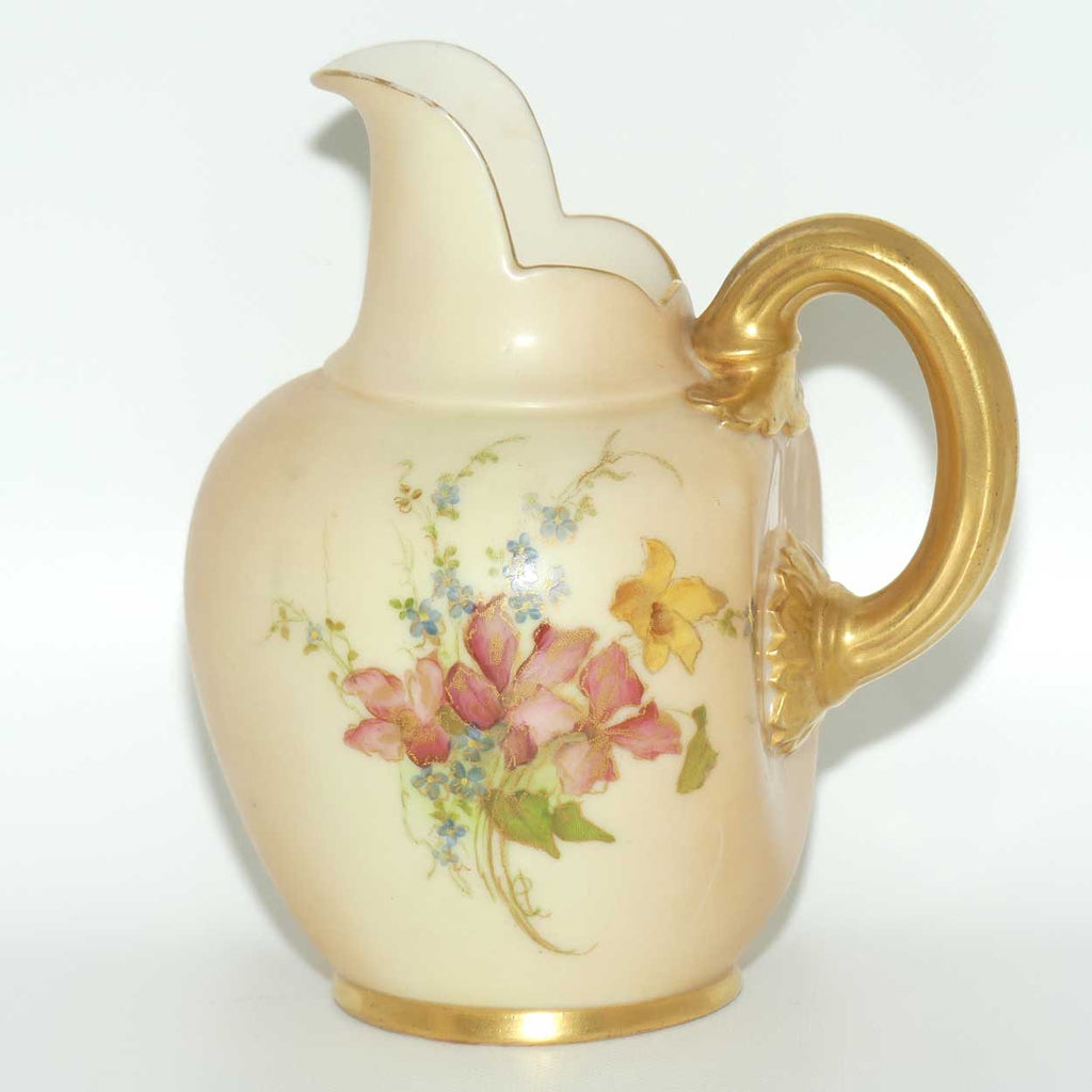 Royal Worcester Blush Ivory hand painted pink floral smaller flatback jug