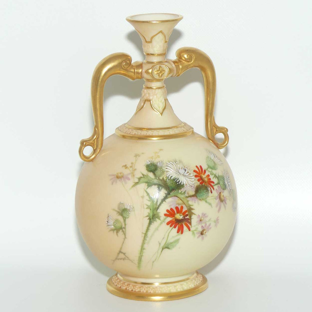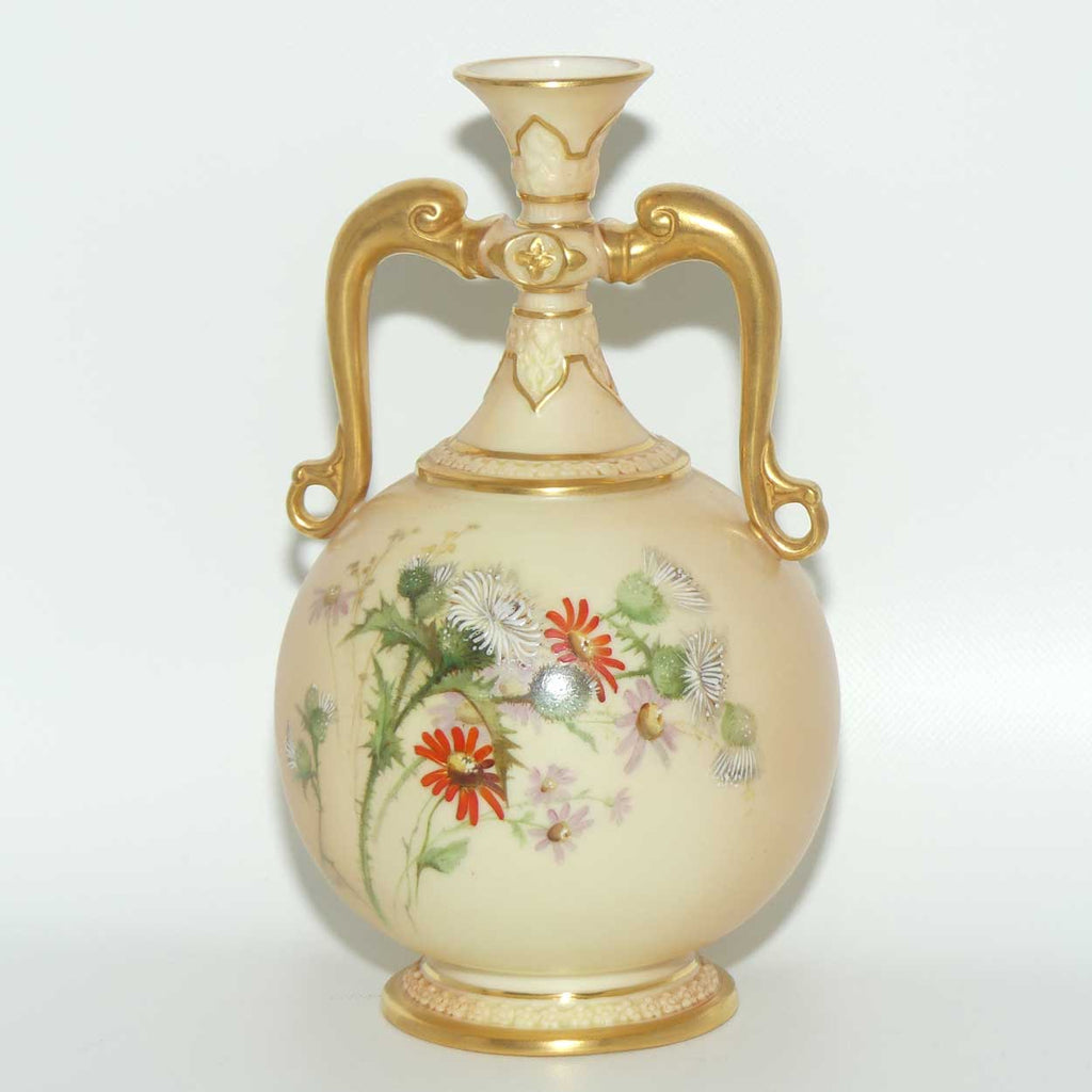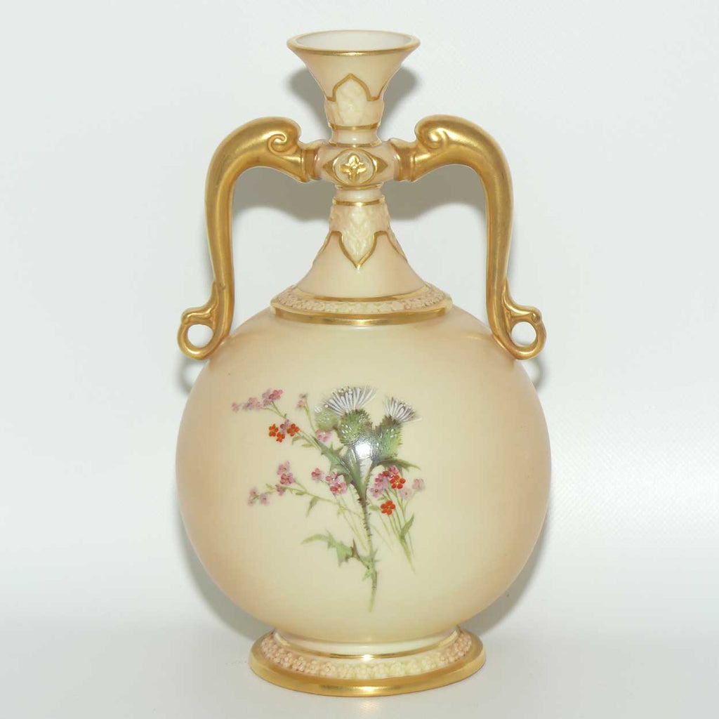 Royal Worcester Blush Ivory hand painted thistle bulbous handled vase