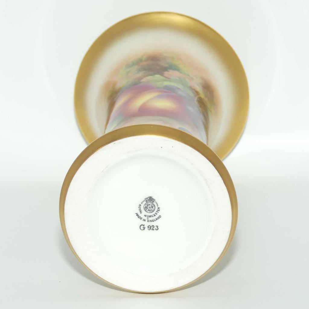 About Harry Ayrton (1905 - 1976): Harry started at the Royal Worcester factory in 1920 where he stayed until his retirement in 1970. He was a member of the group of apprentices that would become known as the Terrible Seven - in the most playful and harmless of manner, they would terrorise the other Royal Worcester workers and "skive off" to play football or cricket whenever the opportunity arose - often in inappropriate places! He was also a very keen member of the works cycling club and participated in many of their outings and races. Althought trained to pain many different subjects, Harry was most skillful at Fruit painting and this was his major topic.
