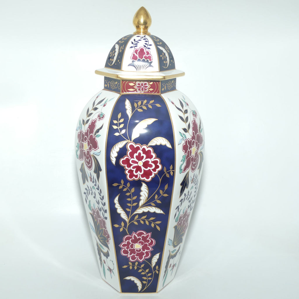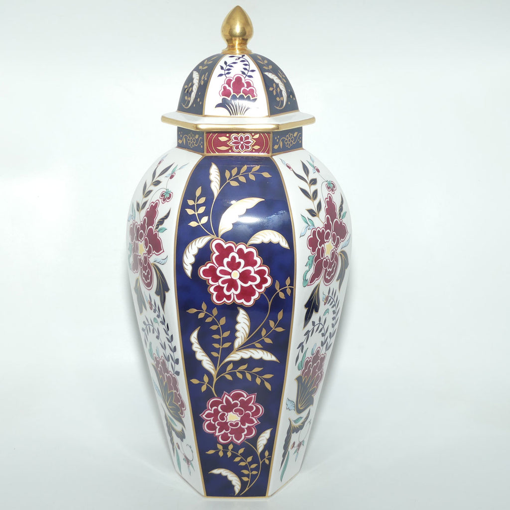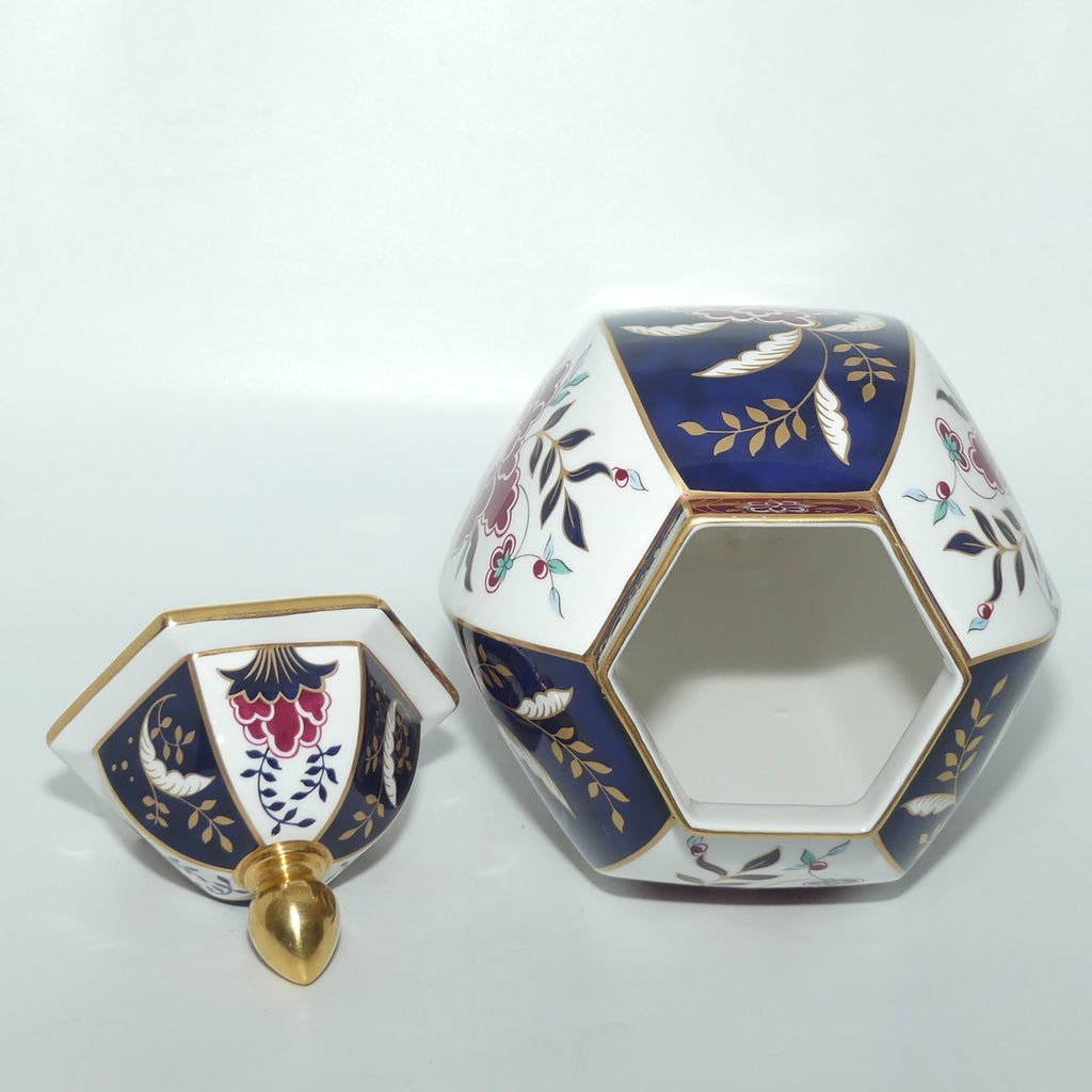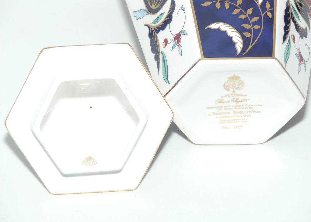 Royal Worcester hexagonal Hancock Panelled vase with lid