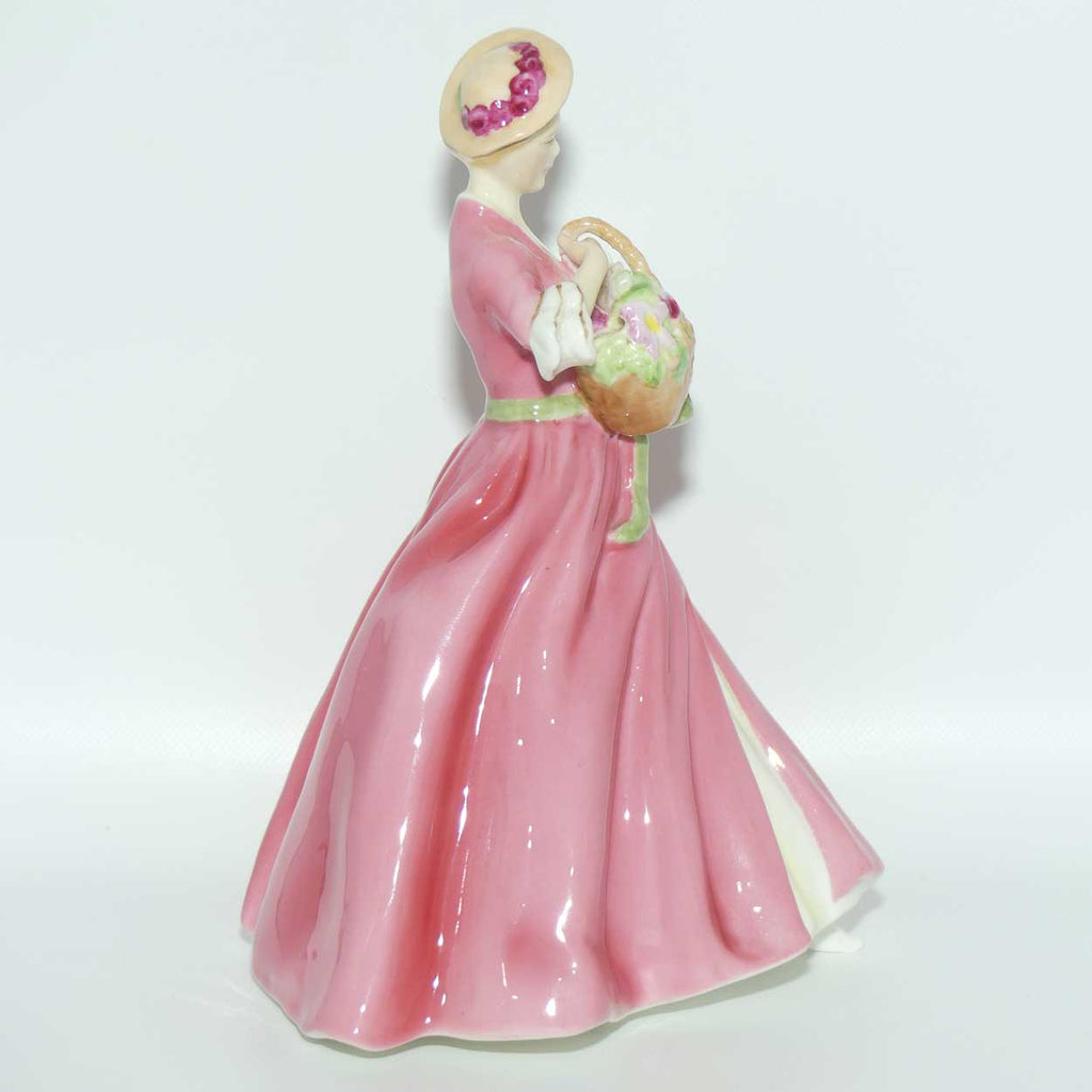 The reference books specify this figure as having a red dress, white collar and underskirt, blue ribbon and a straw basket of flowers (and picture the figure with a full brimmed hat). This version [not recorded in reference books] sees the lady with a Pink dress, white collar and underskirt, green ribbon, straw basket of flowers and a 1930's bonnet style hat.