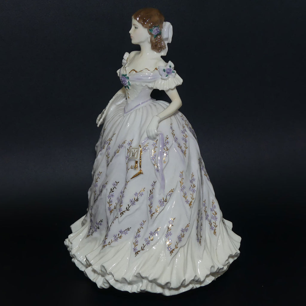 Decorated with a lilac gown with a deeper lilac trim, and plenty of gold