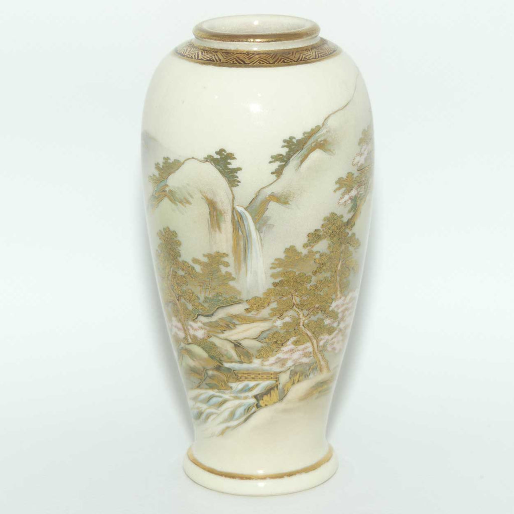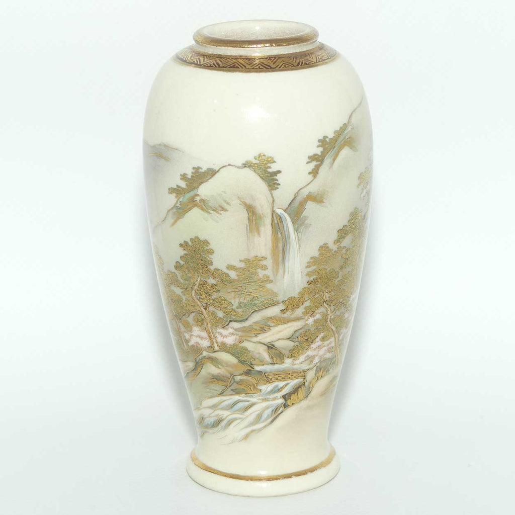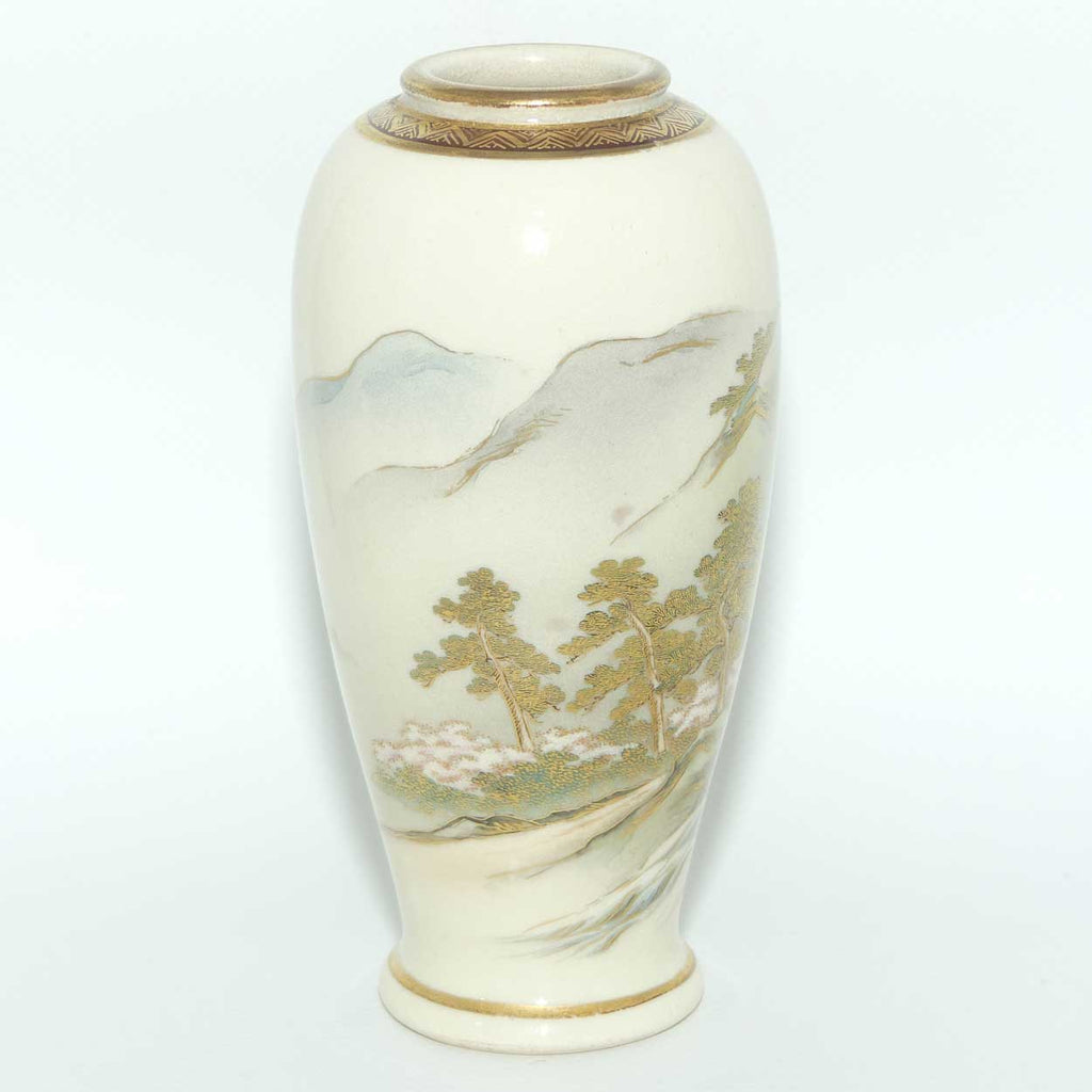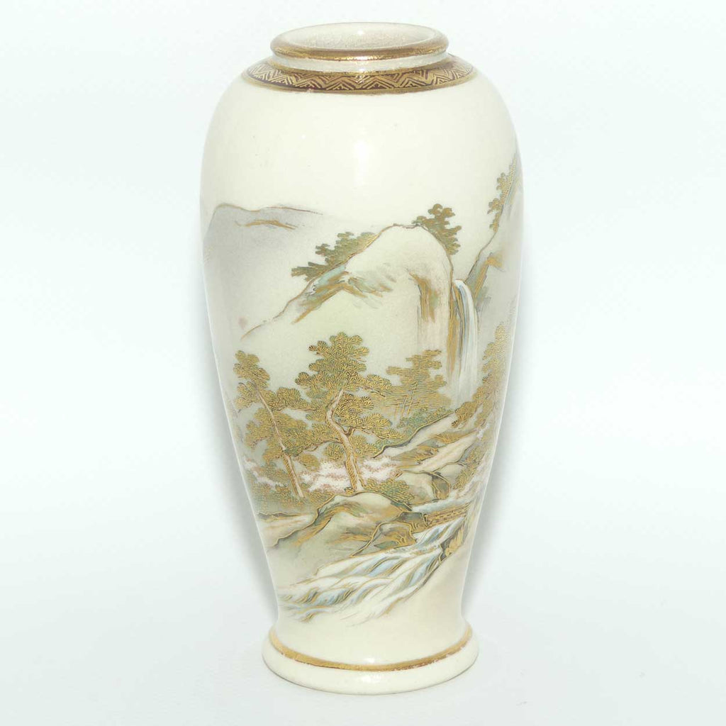A beautifully decorated cabinet vase with a full Mountain scene with heavy gilt decoration