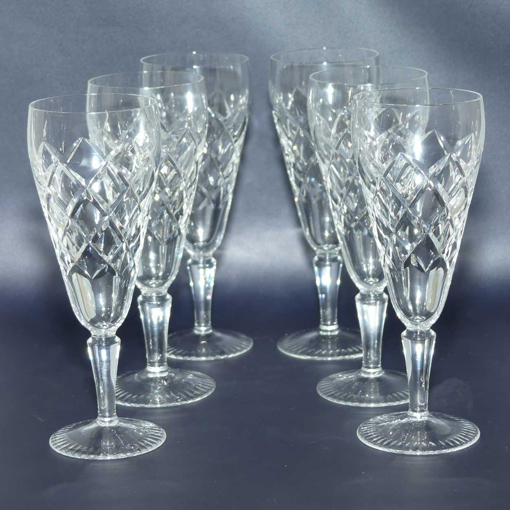 Set of 6 Diamond Cut Crystal champagne flutes
