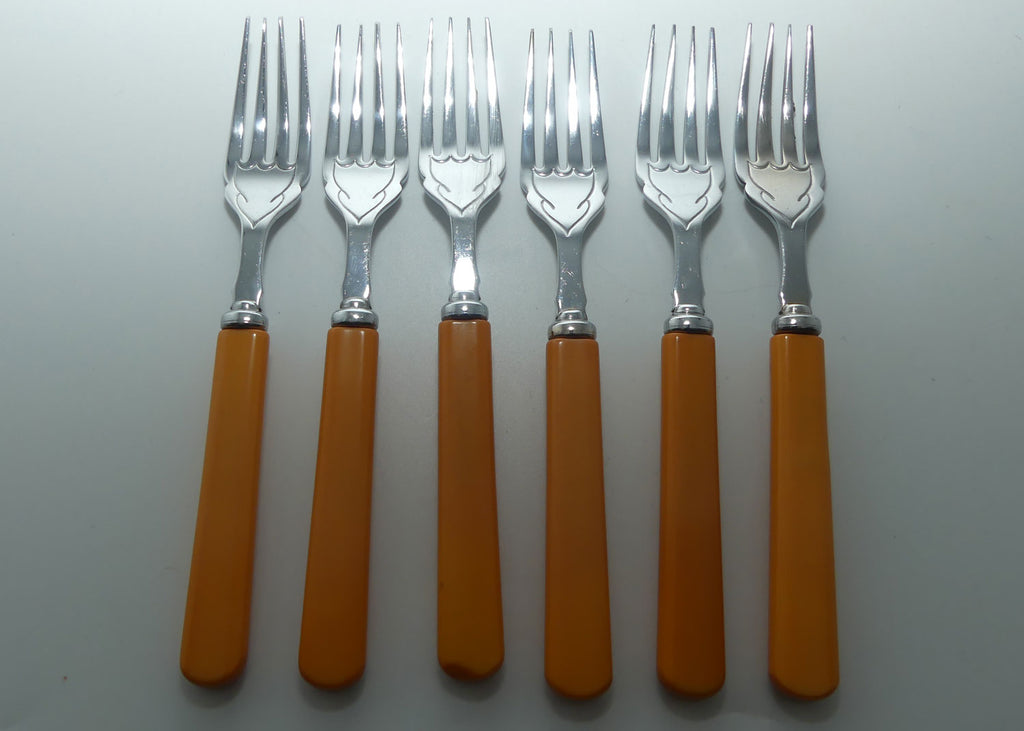 Set of 6 Orange Handle Fisheaters | Knives and Forks