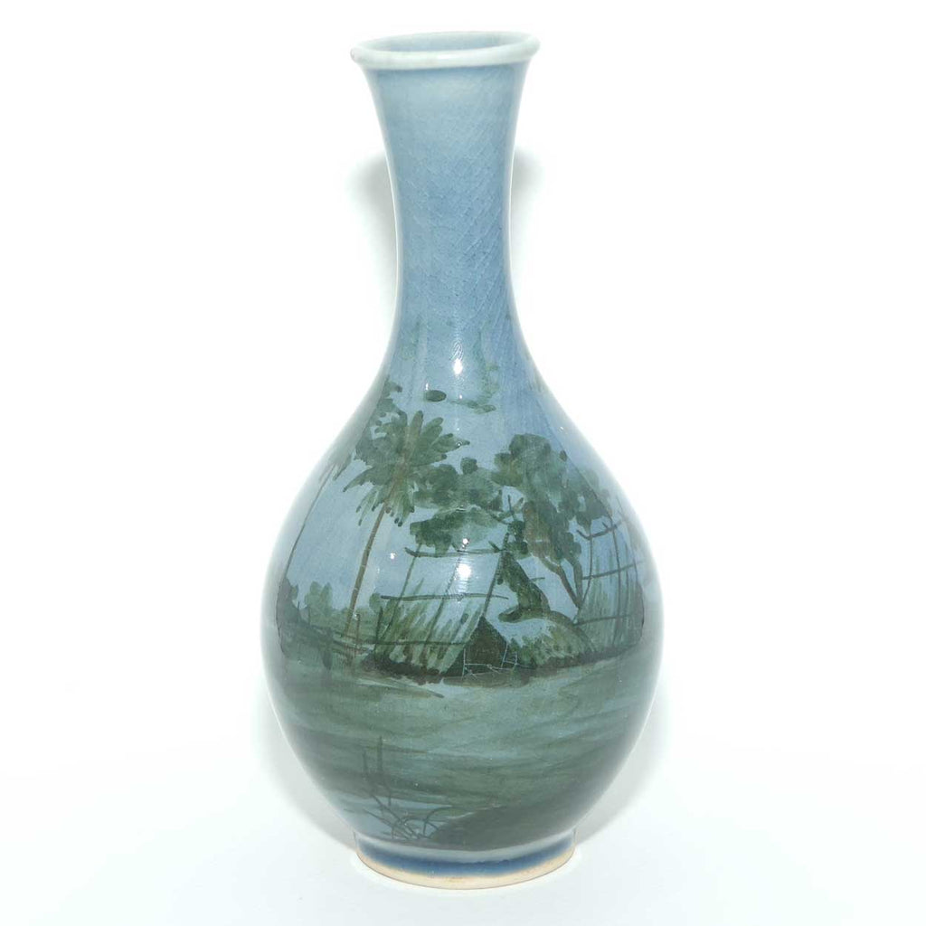 Siam Celadon vase decorated with Thatched Hut scene