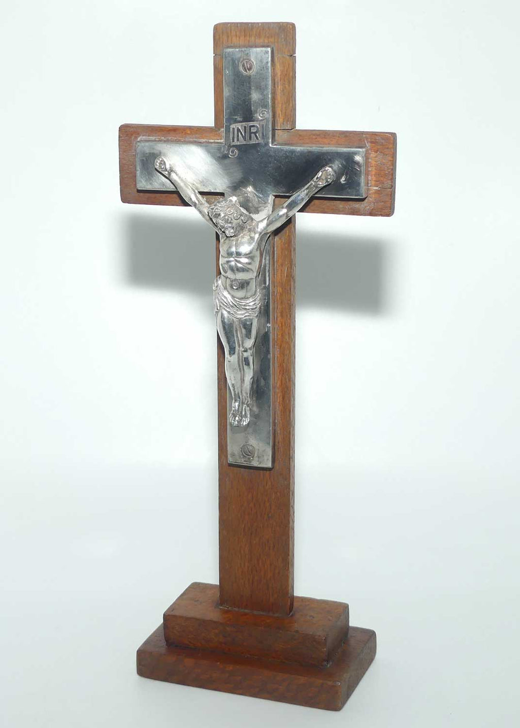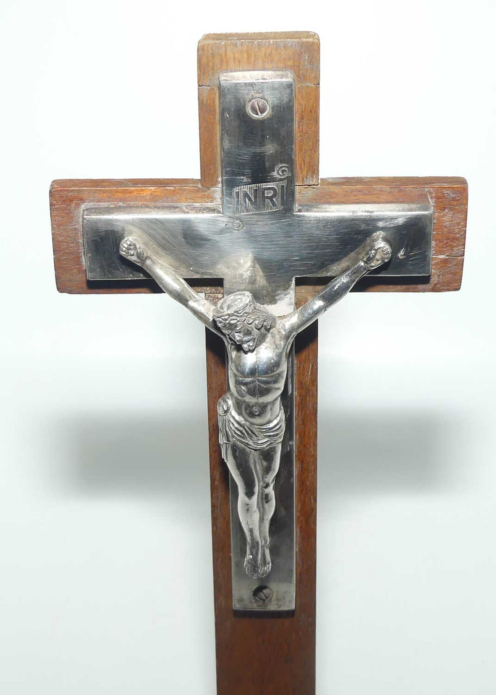 There is slight age shrinkage to the underlying Silky Oak crucifix - but the item is original