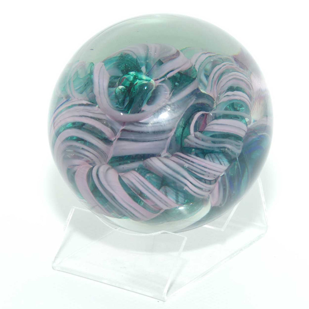 Studio Art Glass controlled bubble and swirl magnum paperweight