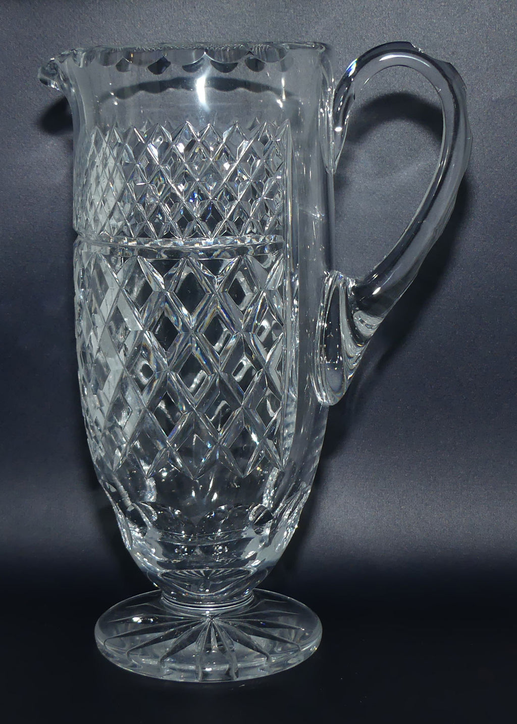 Much nicer than the average Bohemian crystal, this lovely jug has a facetted rim and handle and large and small diamond cut design, with a star facet to base
