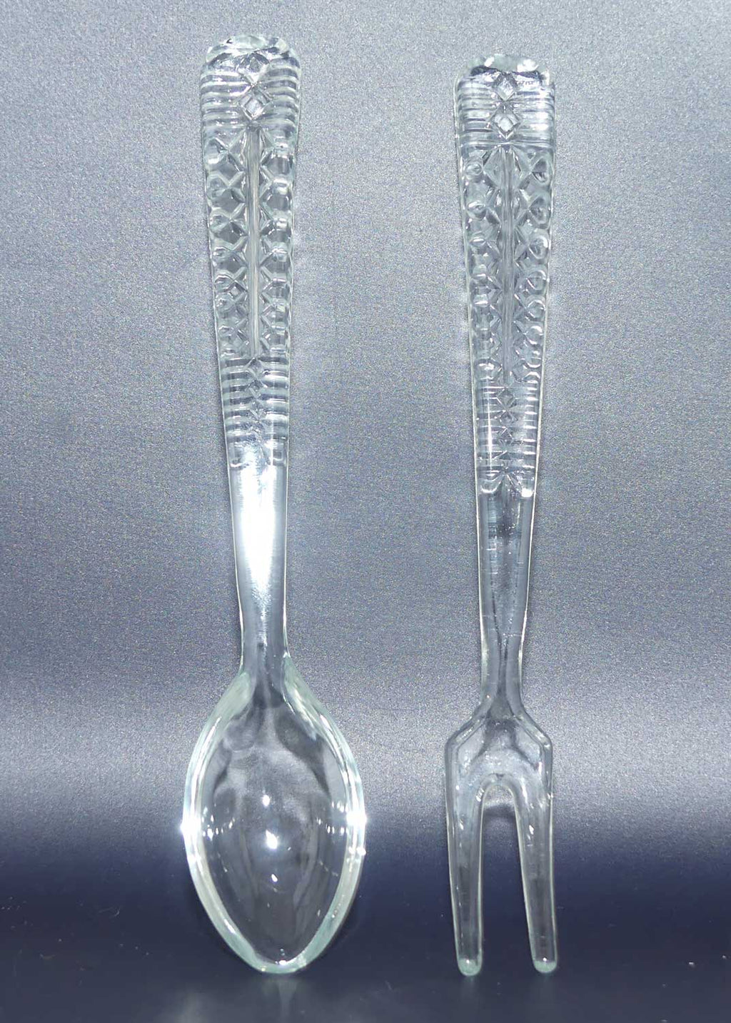 Traditional Diamond Cut Crystal salad bowl and pressed glass servers