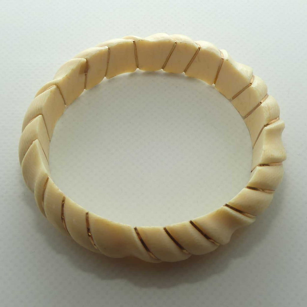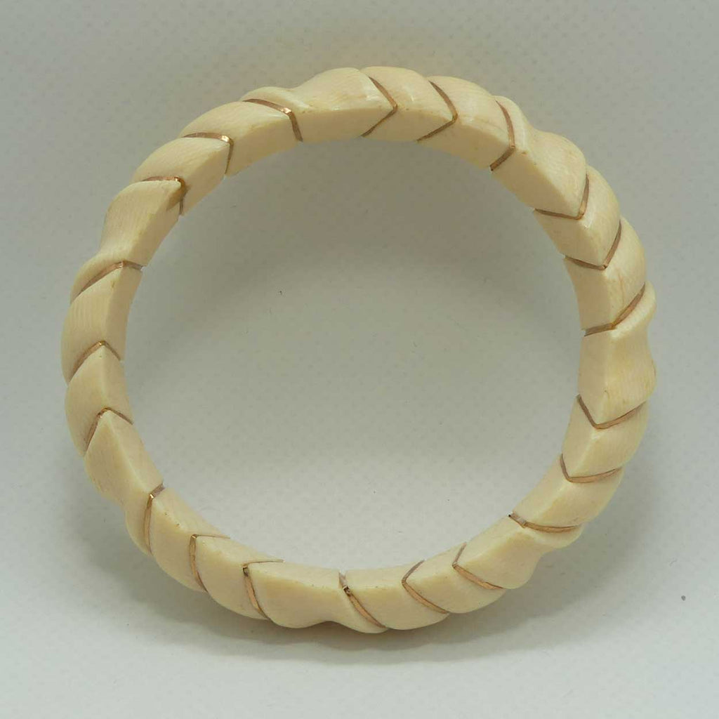 This bangle showcases the beauty and elegance of natural materials and has the added bonus of the twist design. It is perfect for those who appreciate the history of Antiques and the beauty of true craftsmanship and want to add a unique touch to their look. Ivory gives this bangle a one-of-a-kind charm that will make a statement wherever you go.