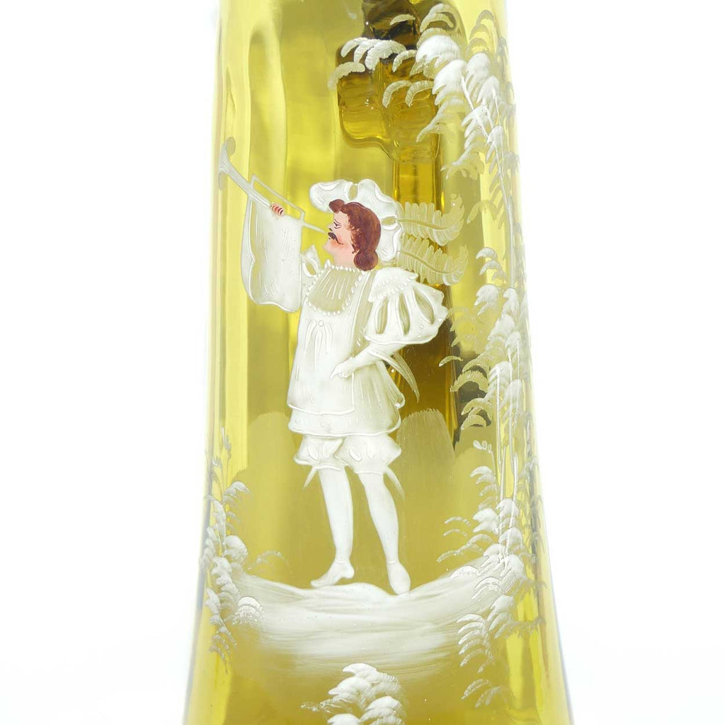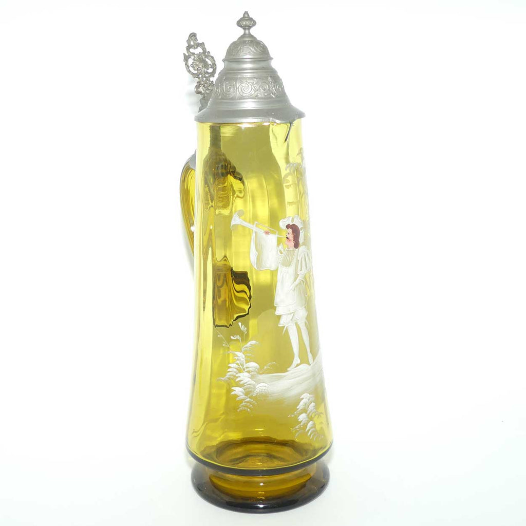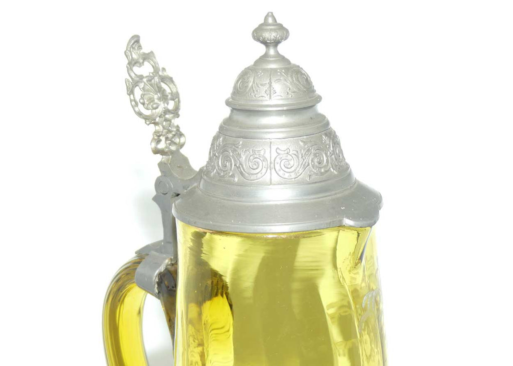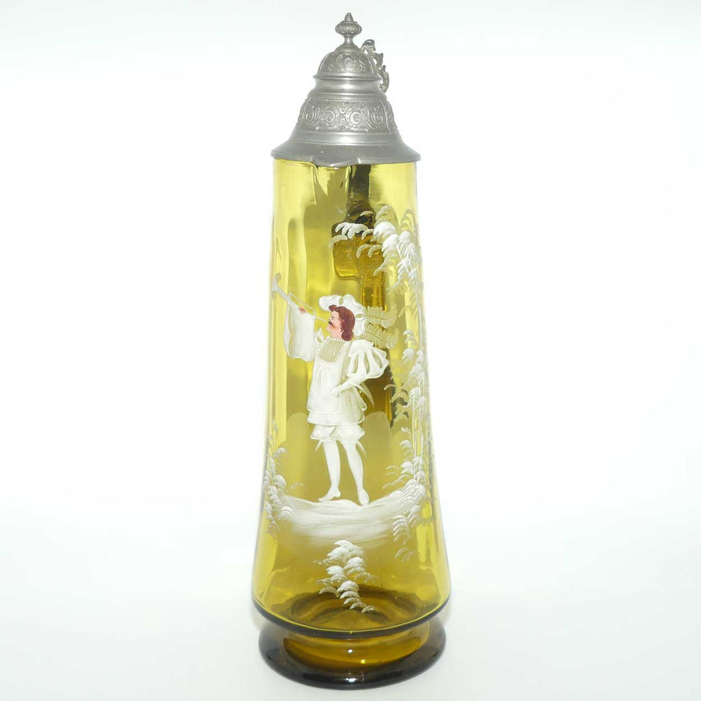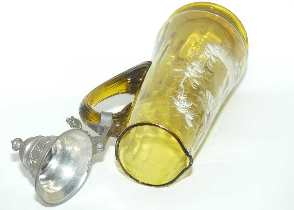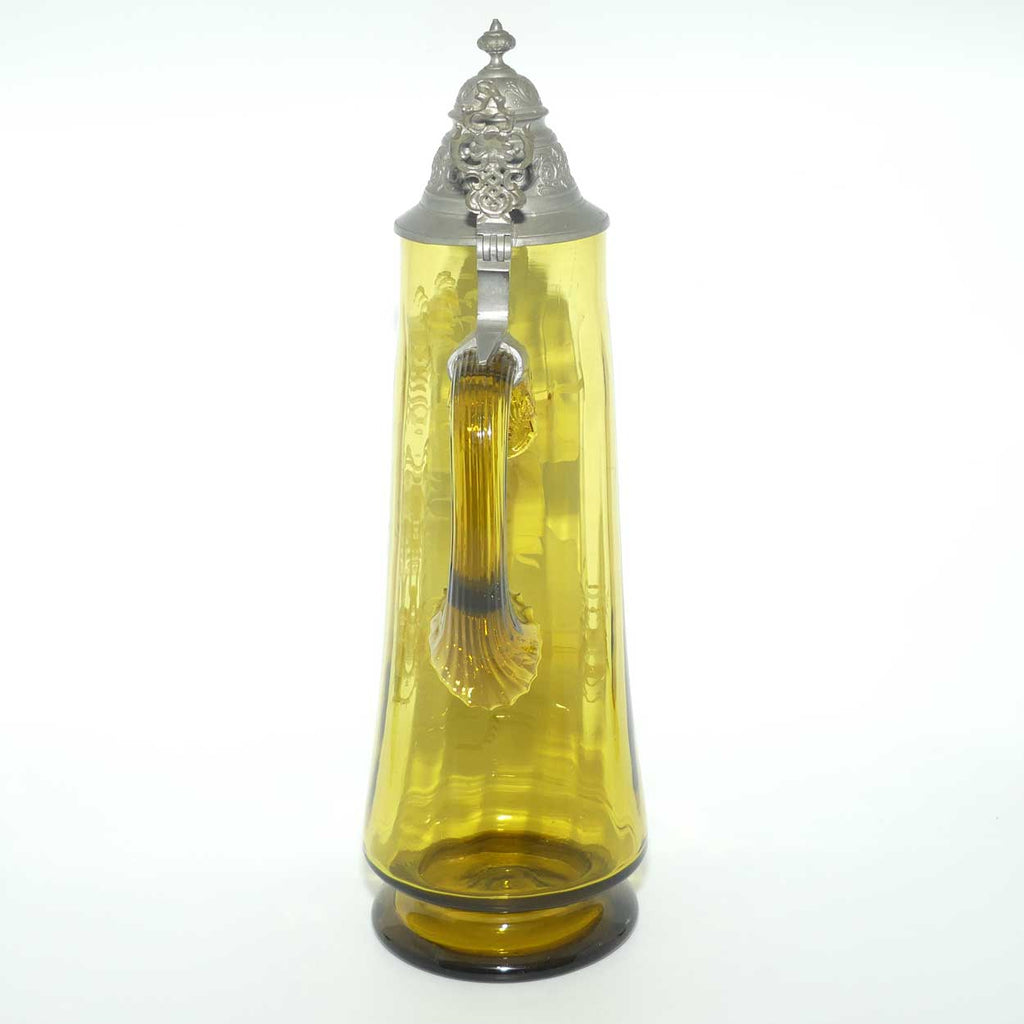 Very large Amber glass Mary Gregory Stein with Pewter hinged lid