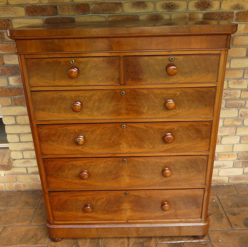 Make no mistake - this is a prominent piece and will suit a taller person - or a collector or decorator who wants a superb bedroom feature piece. This piece exhibits typical mid Victorian style and simplicity and the drawers are finished with cockbeading. Beautiful fine dovetails are noted. It has had internal restoration in the last couple decades and will continue to give a lifetime of pleasure and service.