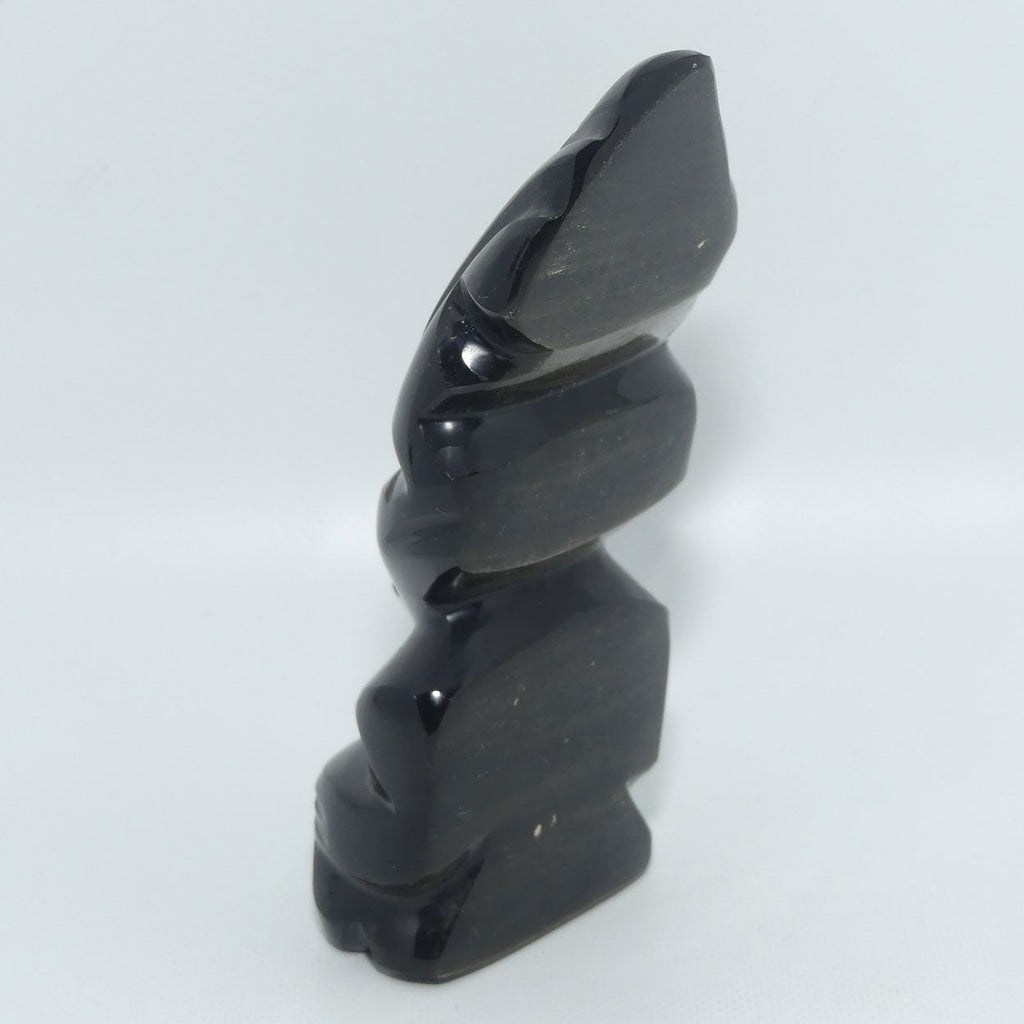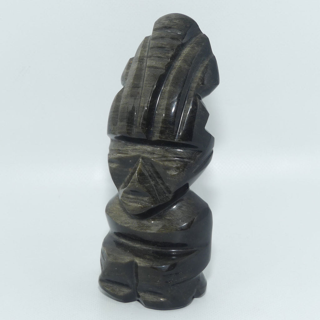 Golden Sheen Obsidian is a variety of Obsidian which exhibits a golden sheen, caused by gas bubbles remaining from the lava flow, aligned along layers created when the molten rock was flowing before it cooled.