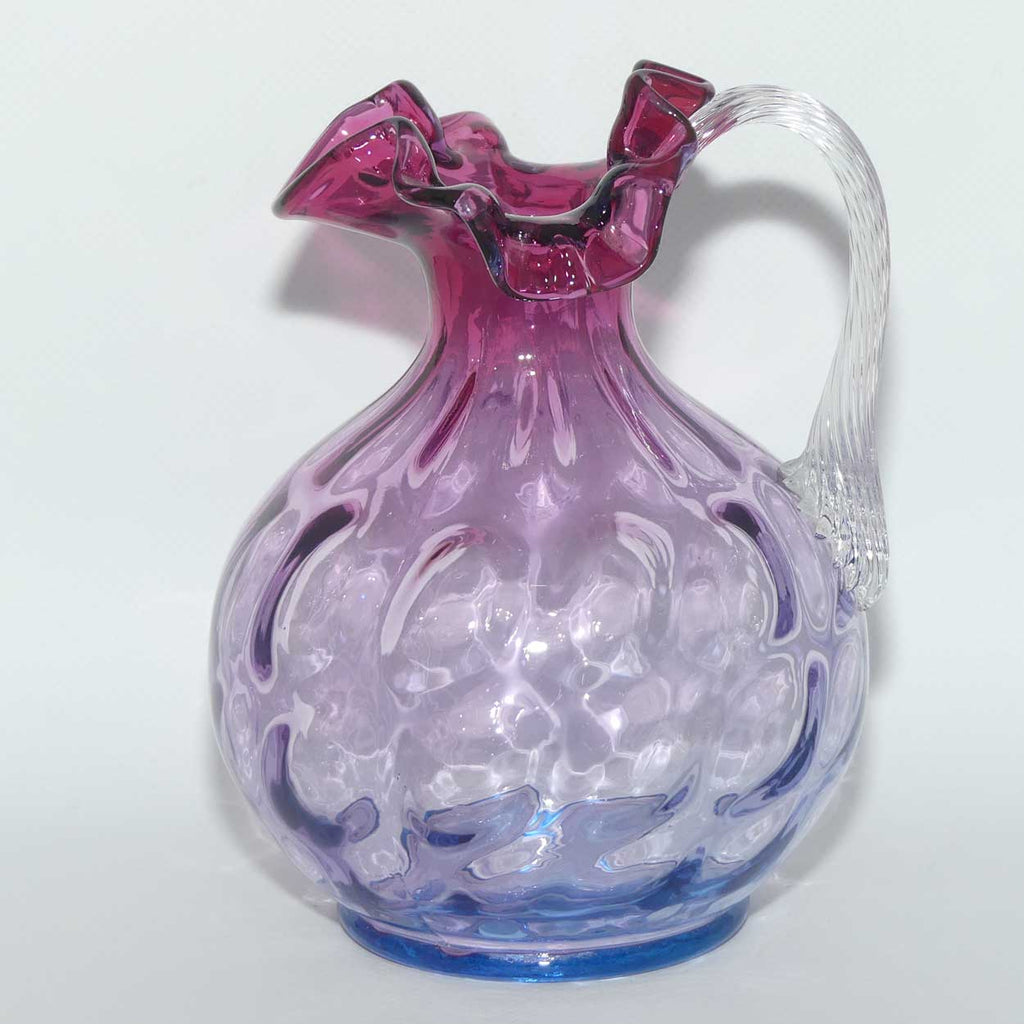 Vintage Fenton Glass Coin Dot Mulberry and Cranberry frilled rim jug